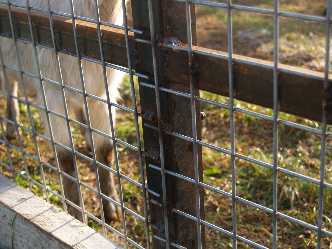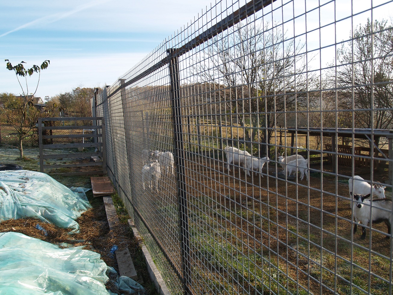 Козы пасутся круглый год. Сзади за на честном слове держащимся заборчиком начинался лес. Заросли дикой ежевики с колючками размером с ладонь и молодая поросль всего подряд. Соседям через пару домов повезло больше, там большая поляна до основного леса, а им не надо. В общем... нет там больше леса. Где-то 60 на 120 м. В связи с этим задний заборчик старый тупо упал. А мне надо было уезжать, у меня дом в Тамбовской решил продаться. А упал забор - это козы в чужих огородах! А мой сварщик занят был под завязку! Короче, пришлось мне научиться варить. +40 за бортом, я забор варю - зашибись! Не, ну сварила, чо... Красоту буду позже наводить, не до этого щас. Стоит, крепко и высоко, и с двумя калитками. Ворота обозначила, но не доделала, пока стоит просто заваренный.