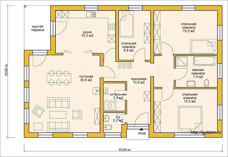 А,как вот такой вариант?Только размеры побольше,спальню 8,8 можно сделать гардеробную.