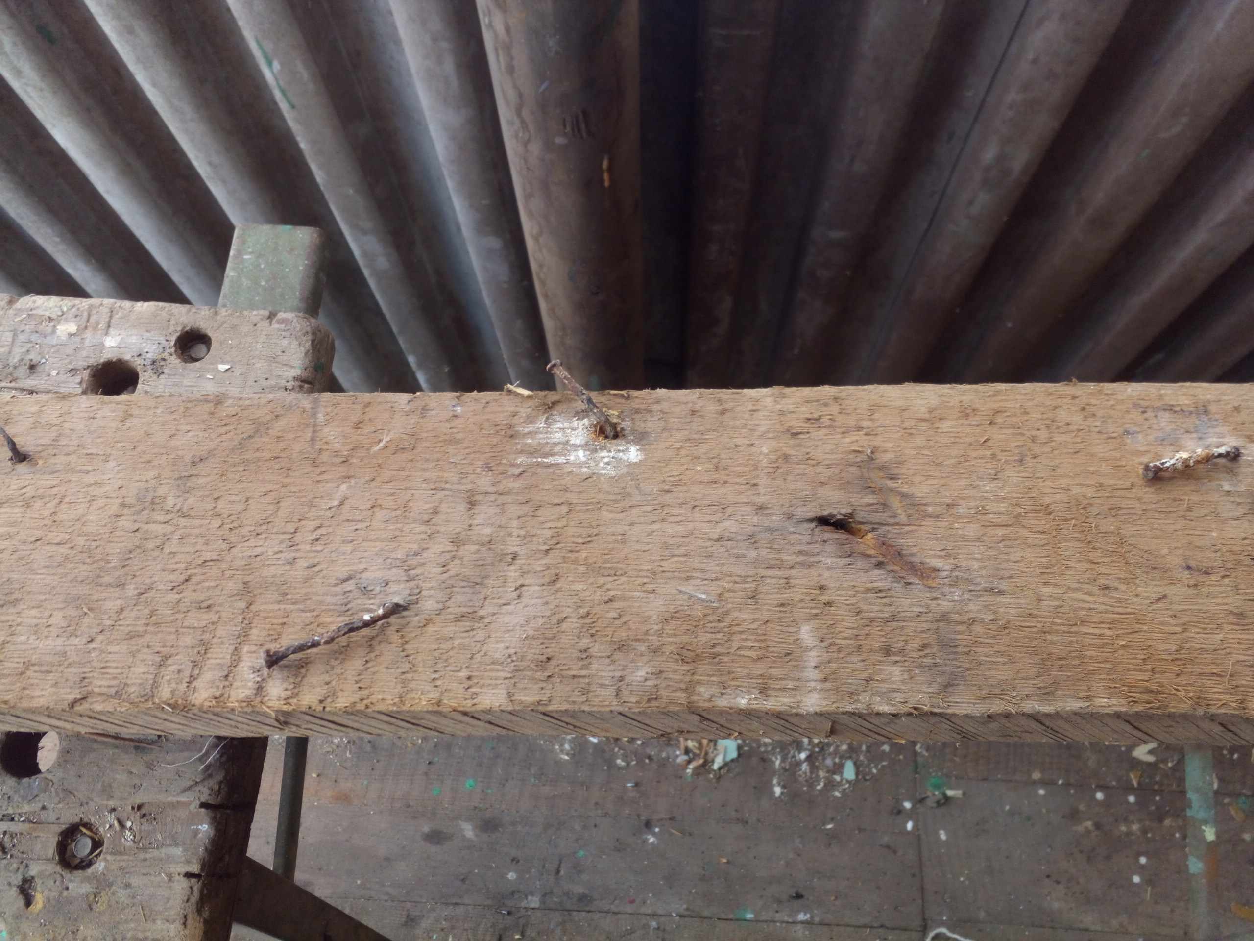 И вот какой прикол заметил - там где доски были оштукатурены известковой штукатуркой, наблюдается полная коррозия гвоздей.