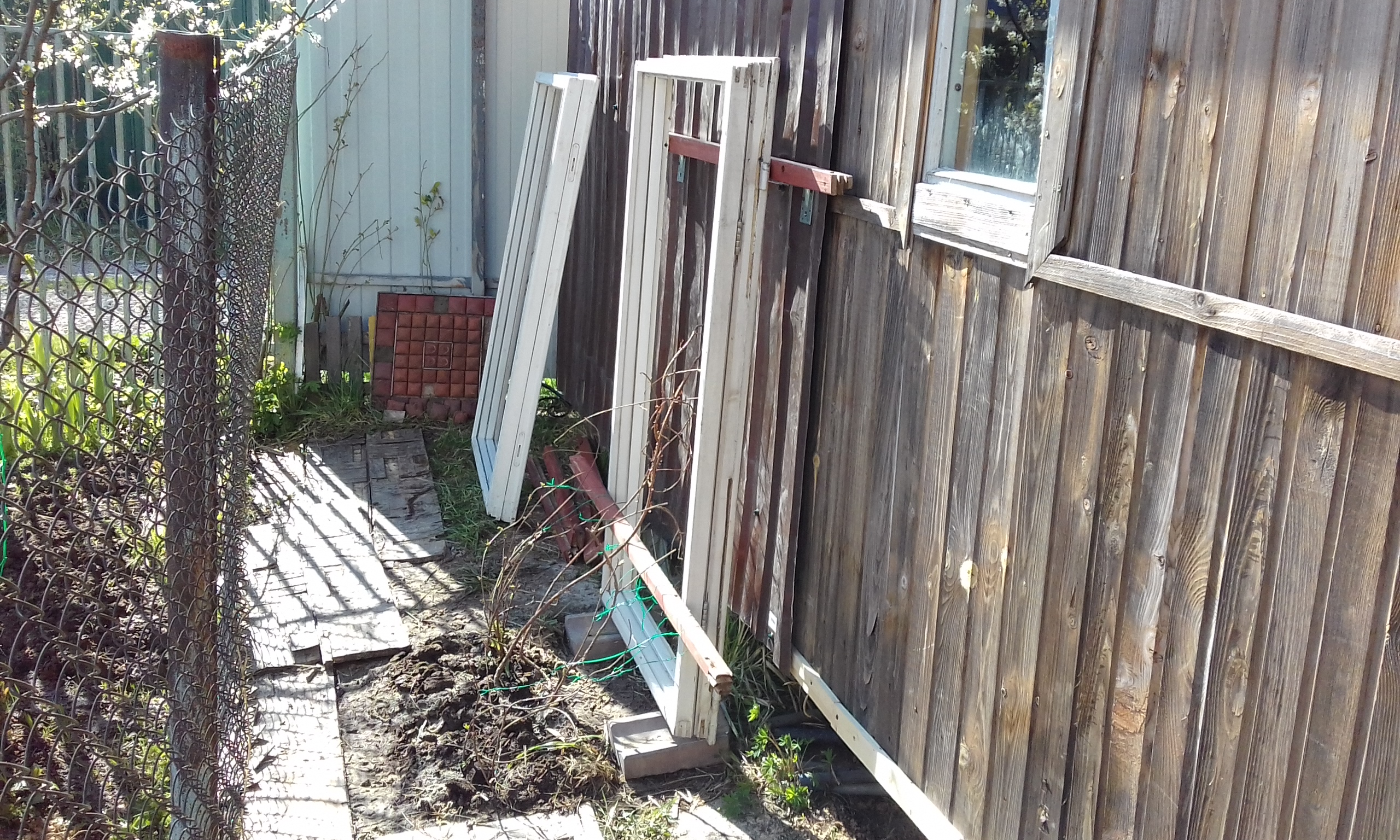 Видишь, я посадил тёщин лимонник под стеной. Он как плющ разрастается, надеюсь что притенит южную стену.
