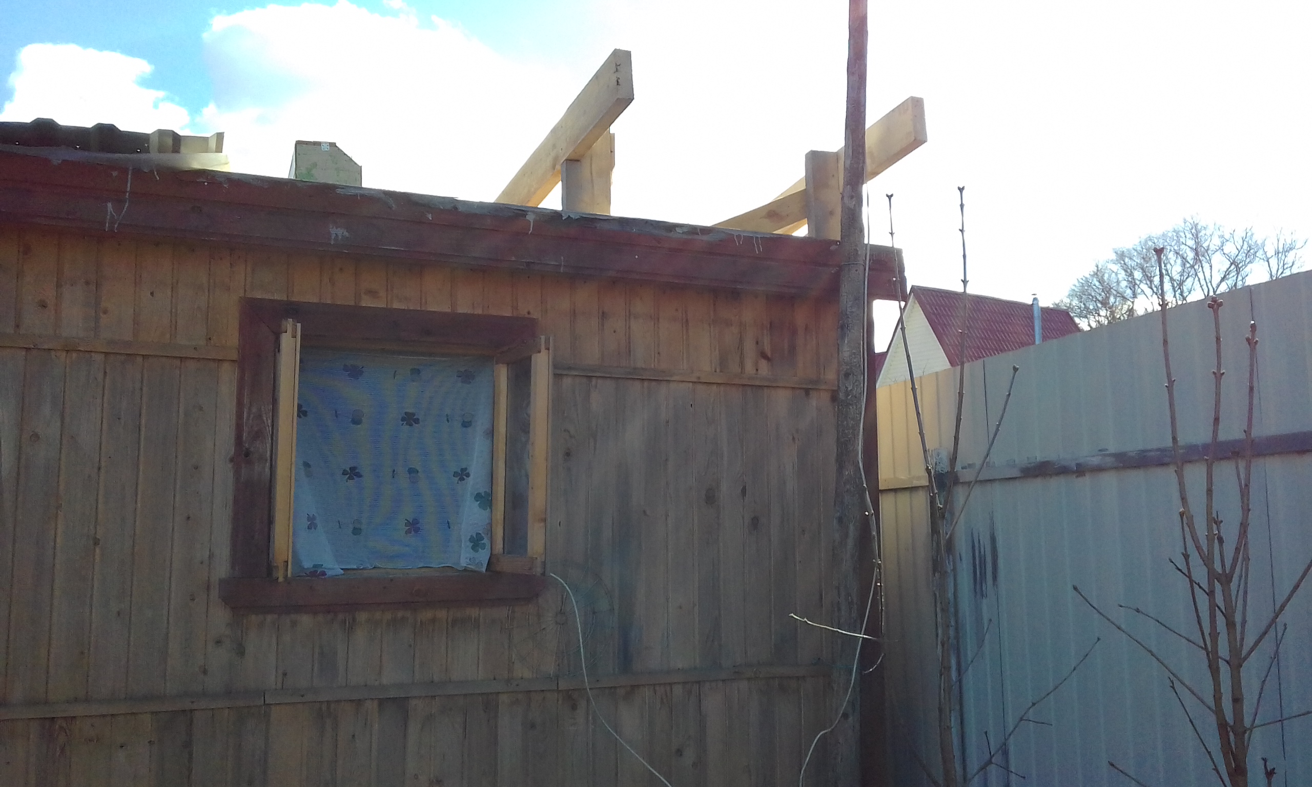 Выставил две стропилы.