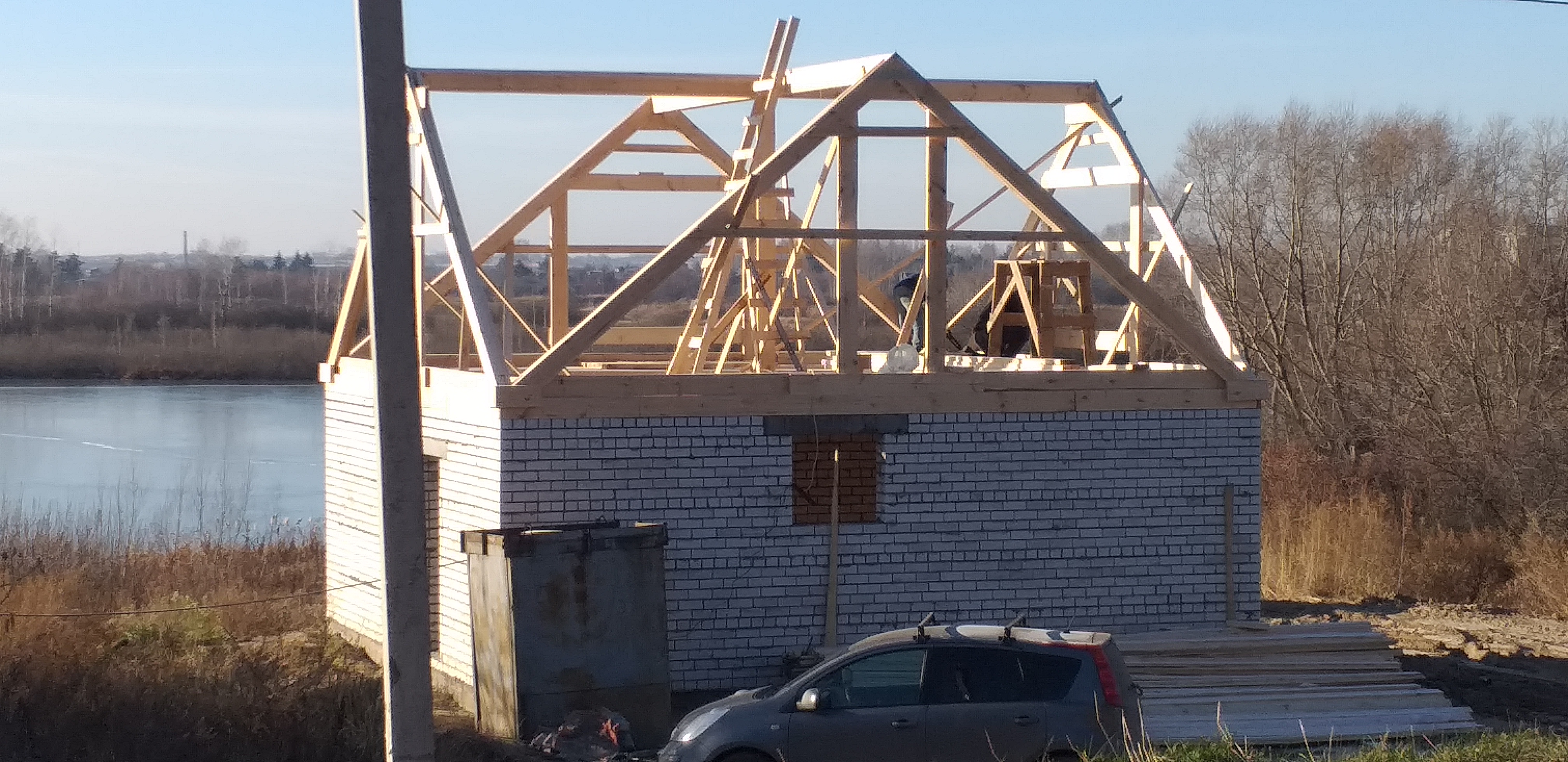 Одну из самых нелепых и расточительных вариантов крыши....