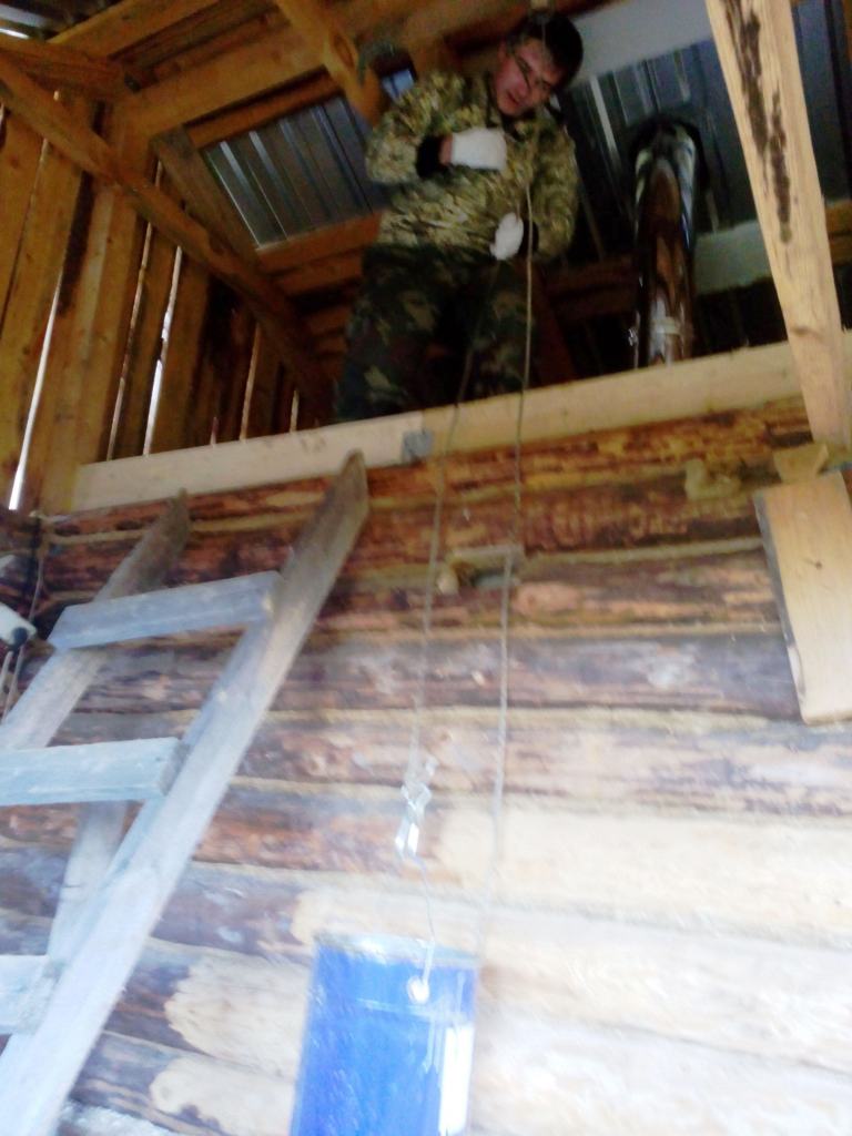 Дмитрий, по доскам черного потолка, что лежит на балках с чердака набиваешь степлером натуральную мешковину, промазываешь ее широкой кистью смесью глины с солью, разведенными до состояния сметаны, сверху второй слой так же, даешь подсохнуть, а потом в мешалочке в такую же сметану сыплешь керамзит чтобы не плавало, а было жирно обваляно и выкладываешь. Когда уложил, то сверху просыпаешь мелочью и проливаешь "сметаной" но все же проще опилкобетоном на глине. У меня тоже высоты сруба не хватало, просто доски нашил и все, а у трубы керамзит.