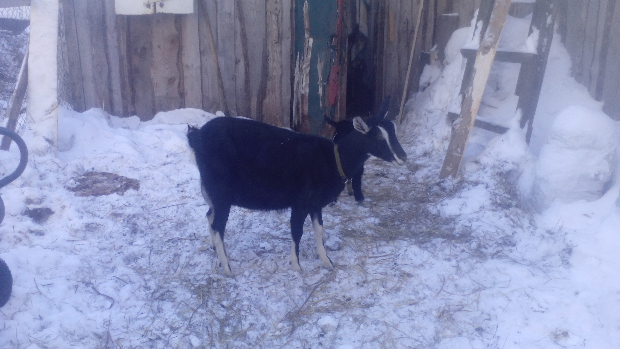 У меня нежданчик! Я думала. что моя карликовая ламанча покрыта большим зааненцем и срок у нее примерно в половине апреля, а она принесла сегодня козлика. Значит зря я грешила на своего козлика - карлика зааненского типа. Значит покрыл он ее, Когда только успел? Ушки Эльф. Я пришла доить , и уже подоила козу. и думаю, кто же это так мявкает? А это нежданчик мой уже стоит на ножках, почти сухой, и послед отошел уже. Отека на вымени нет. Козла домой, козушку доить - как будто всю жизнь доится. морду в миску и стоит, только иногда оглядывается на меня, воркует что-то. А коза в холке 50 см, я чуть не в лежку около нее Надоила я с нее грамм 400 молозива. Затопили печку в козлятнике. Вот видела бы, что она собралась рожать - вчера бы затопили. а сегодня градусов 5-8 там примерно. и на улице -24 с утра. Потепление с звтрашнего дня.