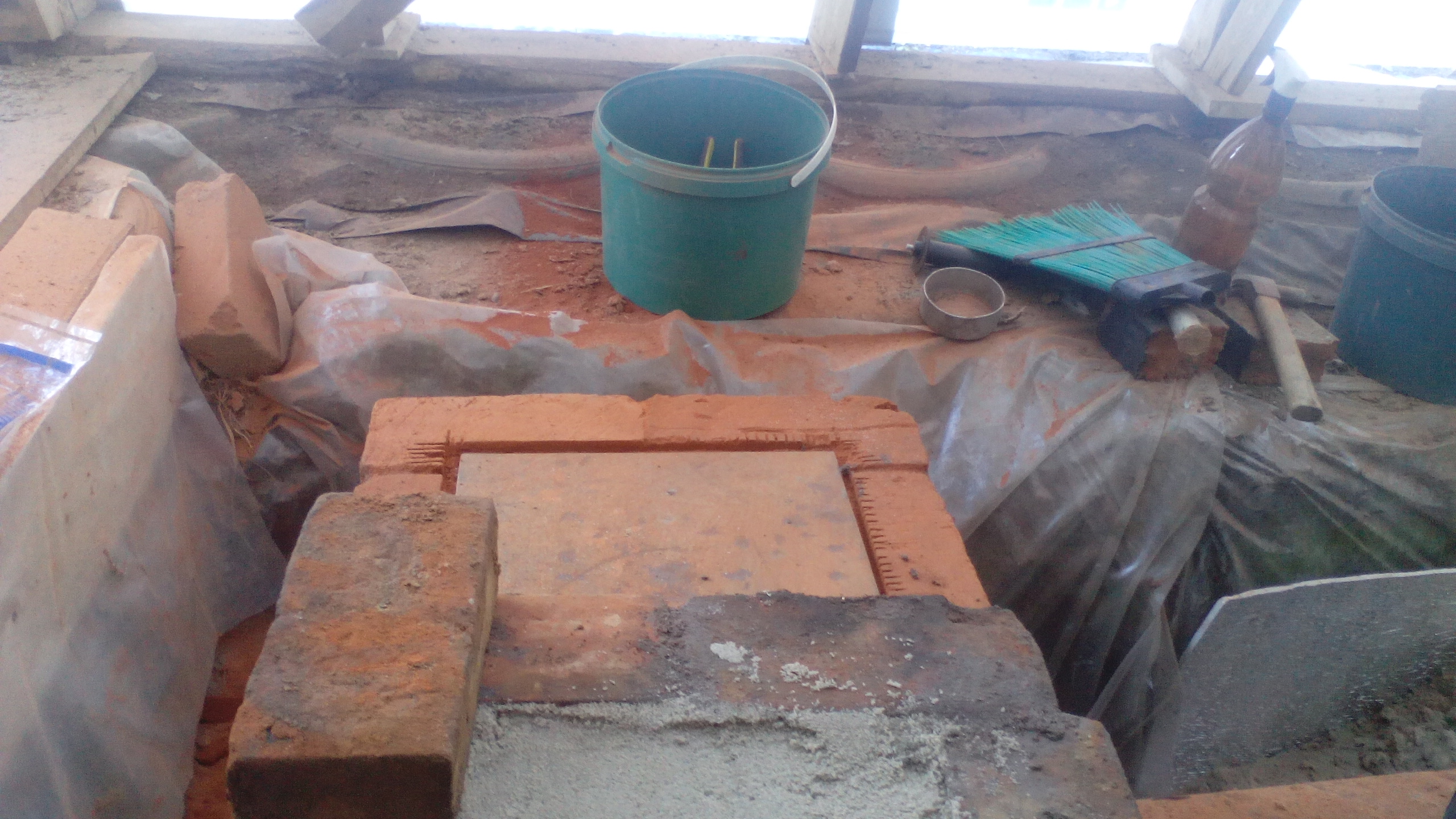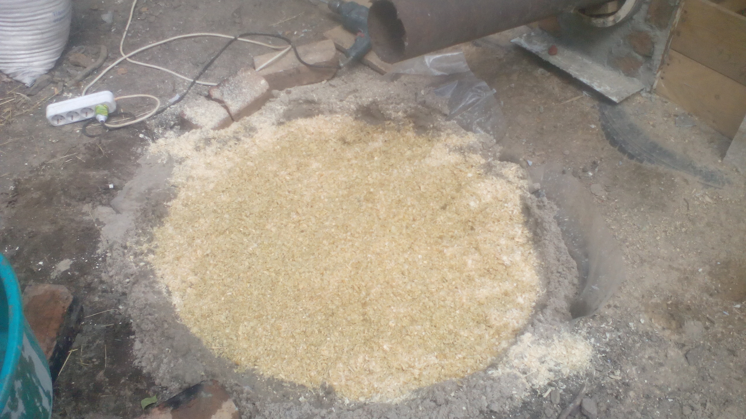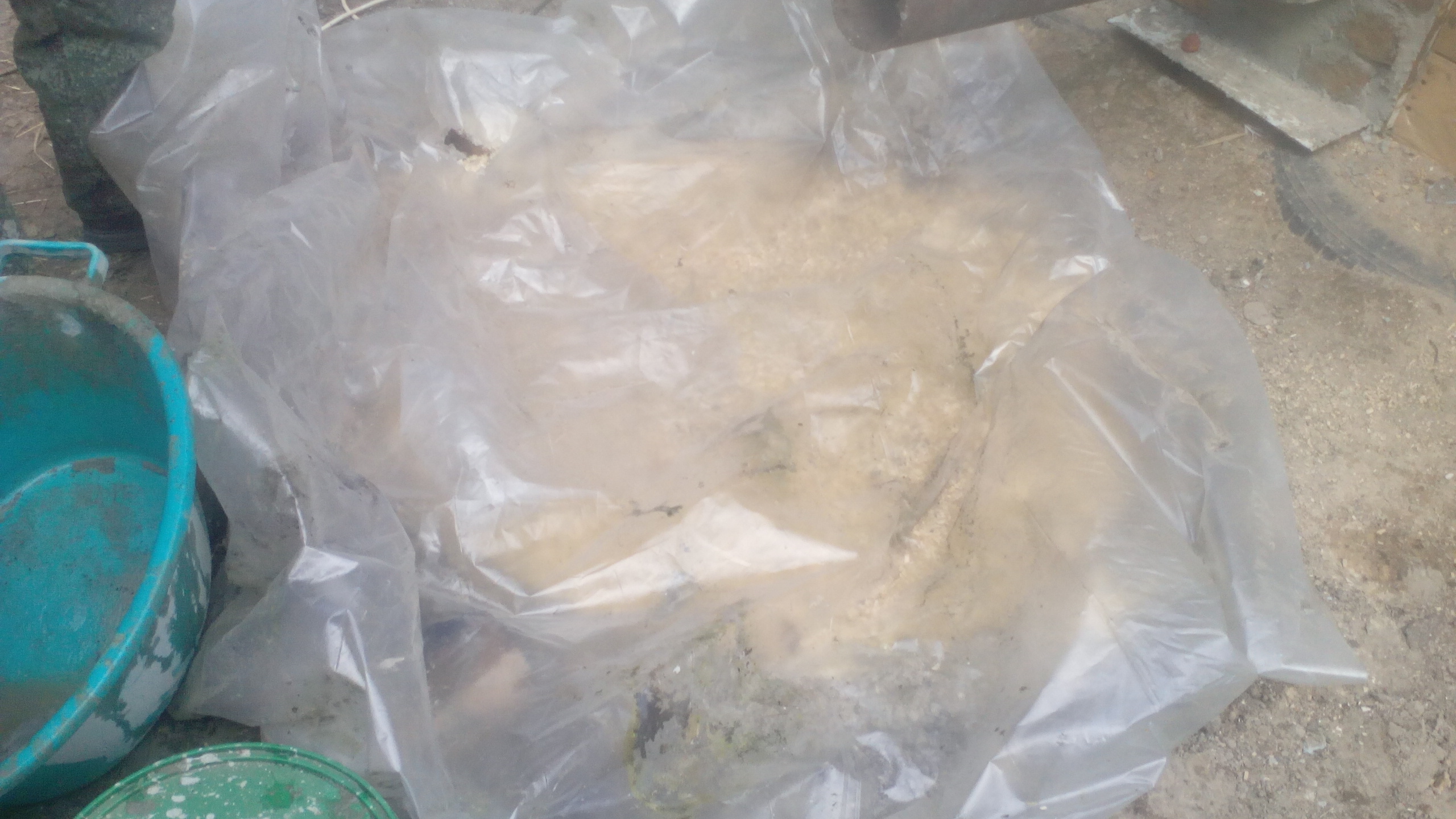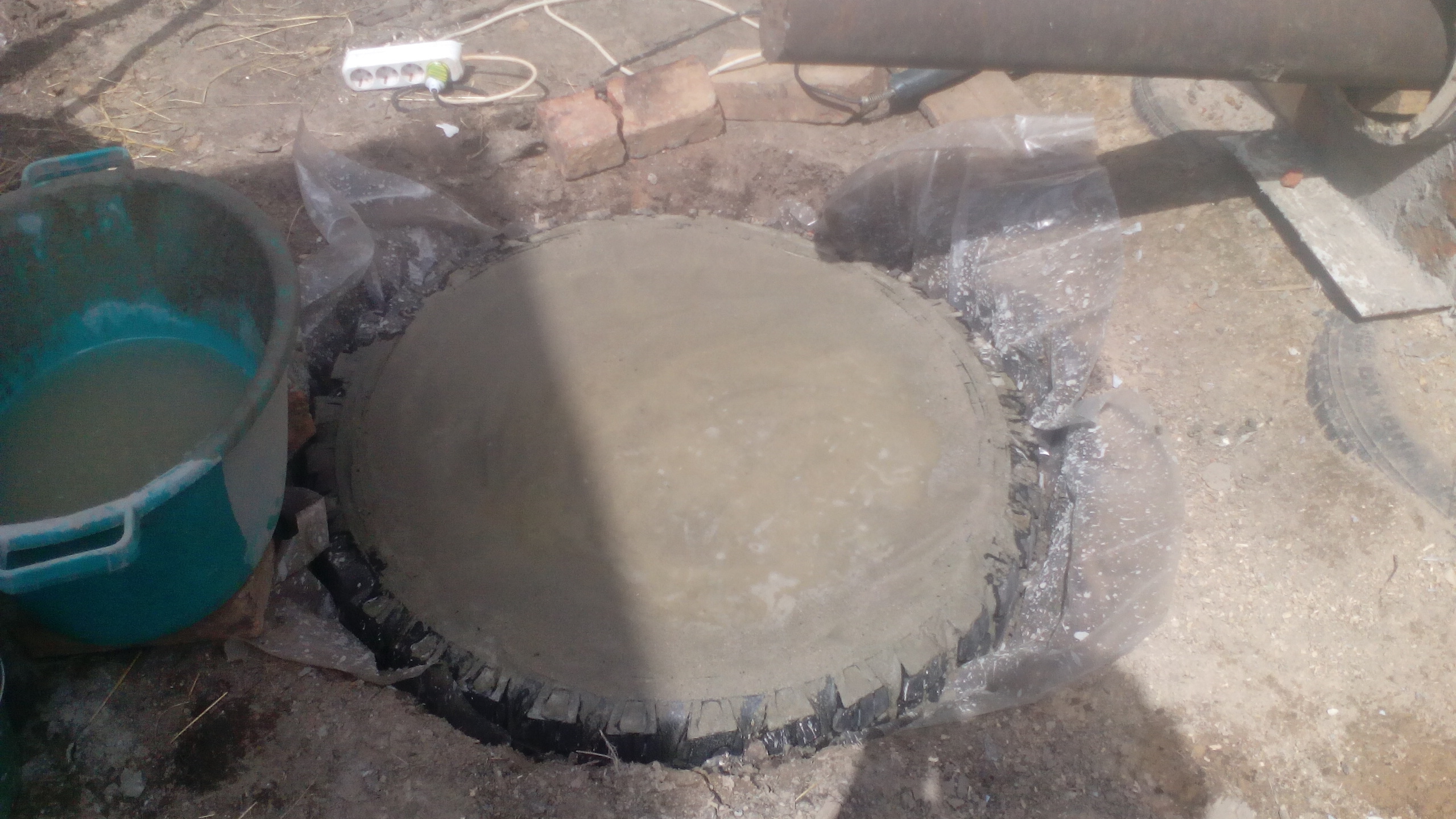 А эту сначала забутовали, сунули арматуру, залили и потом ждешь, как дурак, вот уже третий день, пока все схватится, чтобы начать трубу класть.