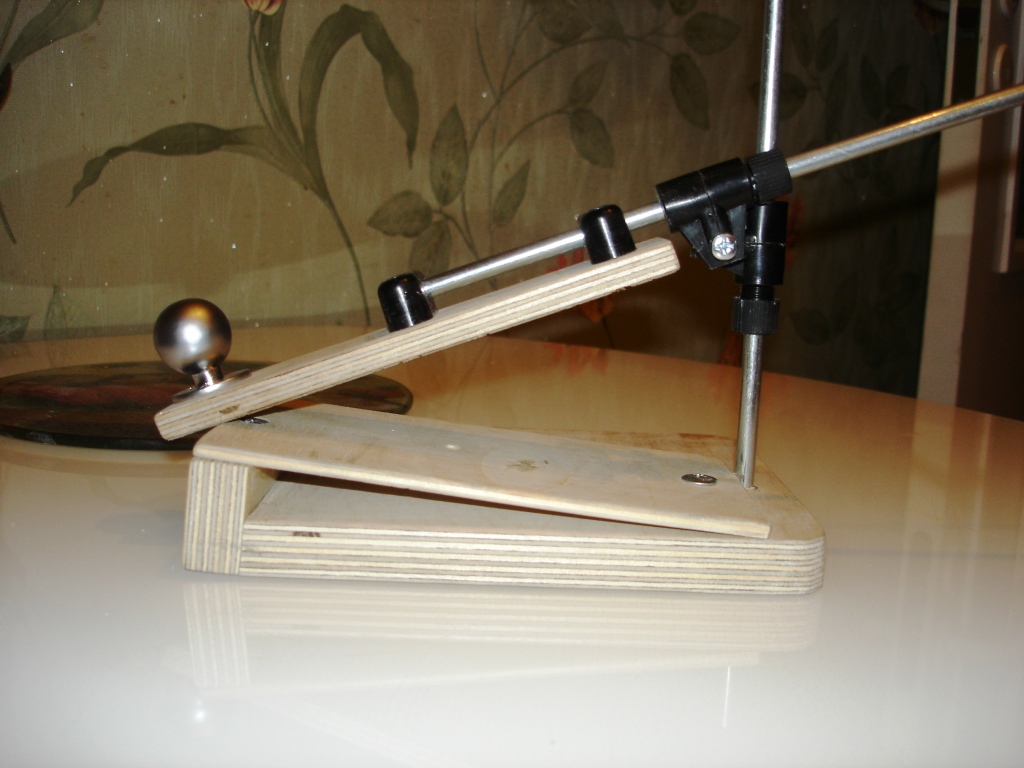 Вот слепил на скорую руку из токого, что нашел в магазинах ближних, остальное в ограде. Сибестоимость шпилька+шайбы+гайки+термоусадка(не подошла плотная сильно)=180р, Проточил слегка почти все свои ножи, завтра проверю, что получилось. Но даже после вчерашней ручной моей, кривой заточки, ножи стали резать лучше овощи, мясу не пост, пока.