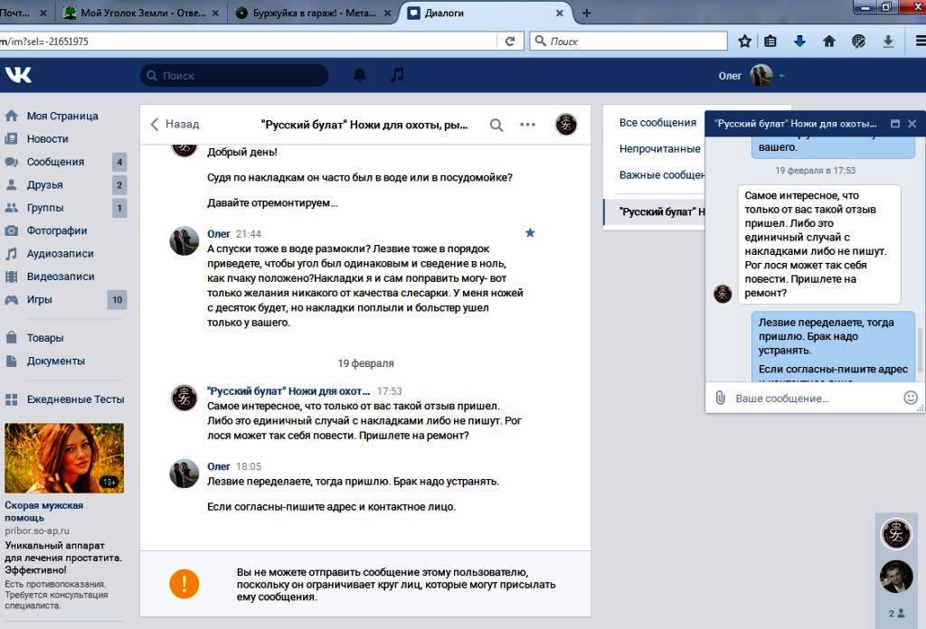 А бракоделам из "Русского булата" я благодарность с этими фото тоже послал в Контакте, чтобы люди видели, а то они пиар-акции там проводят https://vk.com/im?sel=-21651975