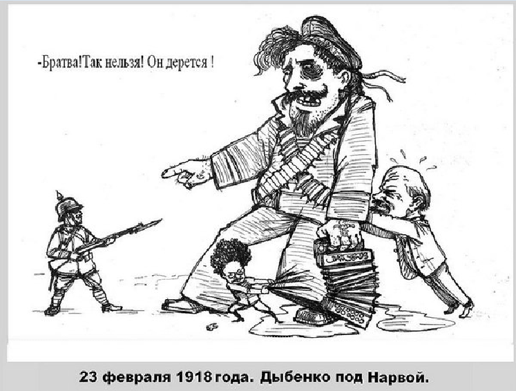 На самом деле задача троцкистского, а затем и сталинского руководства в изобретении этого мифа была проста и понятна: все они принимали непосредственное участие в шутовских переговорах о мире, бесславной организации "сопротивления" немецким частям, а затем и позорной сдаче Германии в Бресте. Вытеснив из памяти неприятные впечатления, связанные с постыдной капитуляцией, Троцкий назначил на 23 февраля всенародный праздник. Продолжив традицию ежегодного торжества, Сталин постарался окончательно вытеснить из сознания своих подданных позорное пятно на прошлом его империи.