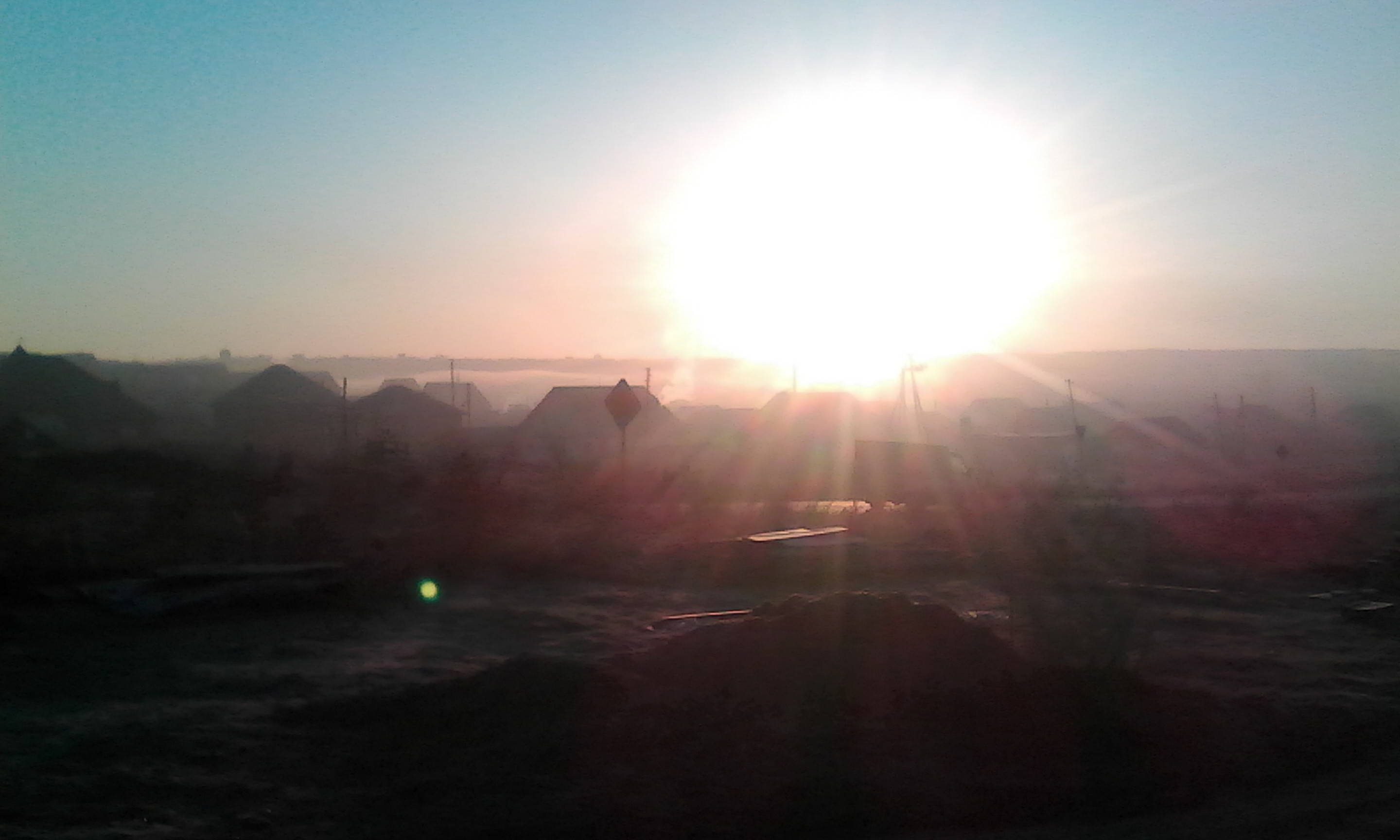 Ладно хватит про еврокомандировочных, давайте про русь матушку. Вот так выглядит новая часть города в морозное утро и безветрие, это не туман это дым, от него по любому выздоравливают люди и волосы на голове покрываются защитной оболочкой