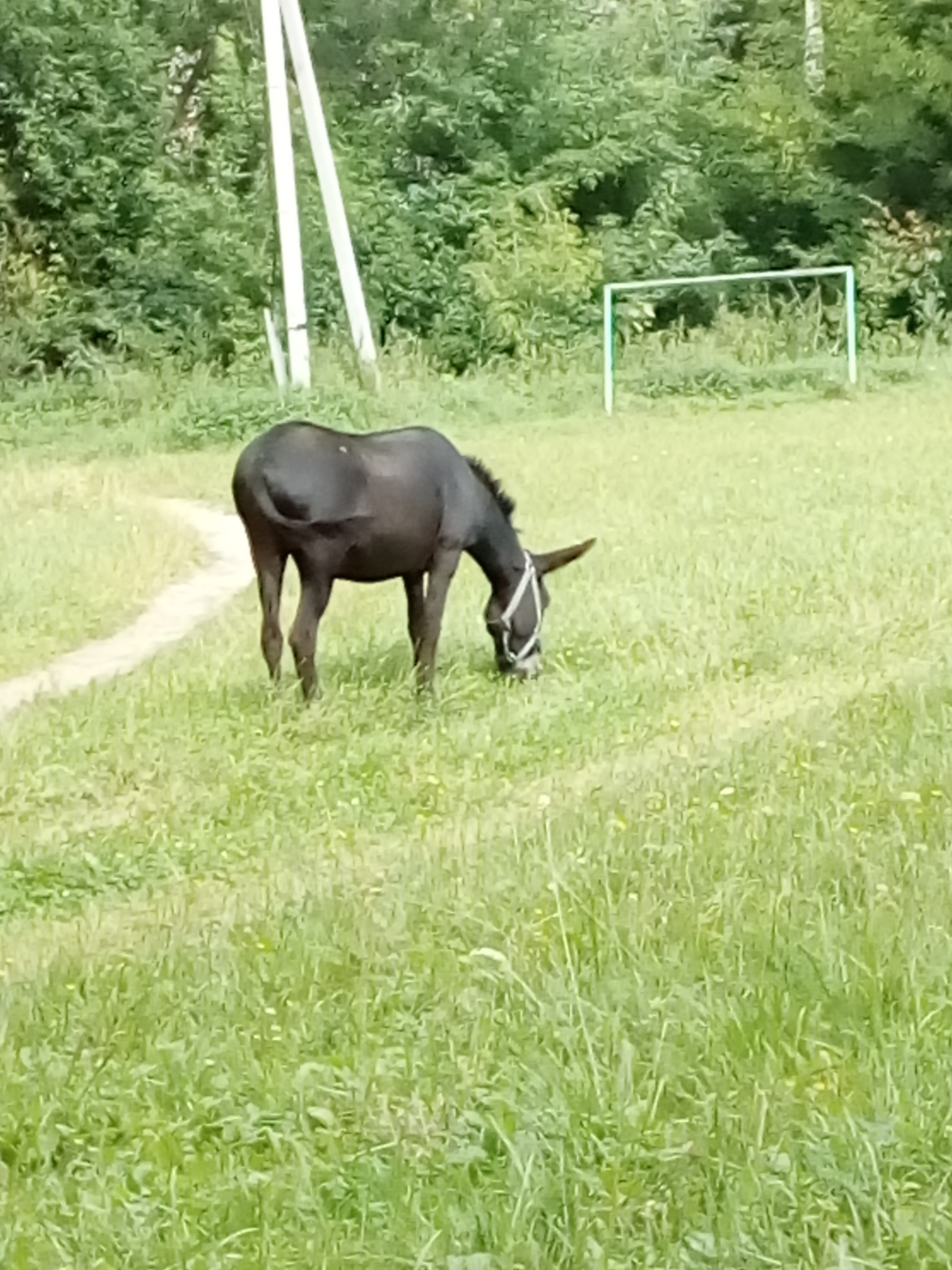 Машенька умна и ленива.Гулять выпускаю без недоуздка и ошенника, чтобы ни у кого не возникло возможности ее увести.Она понимает, что недоуздок - это моя прерогатива - я одеваю и я вожу, потому, что я умею открывать сарай с сеном и овсом.Значит я ИМЕЮ ПРАВО.А остальные не имеют допуска, и мимо проходящий , вознамерившийся на подобные действия, будет, в лучшем случае, проигнорирован, в худшем- наказан.Но так как она человек не конфликтный и очень сильный, то предпочитает не подпускать к себе потенциальных злоумышленников. Догнать ее на свободе нереально, да и удержать тоже.