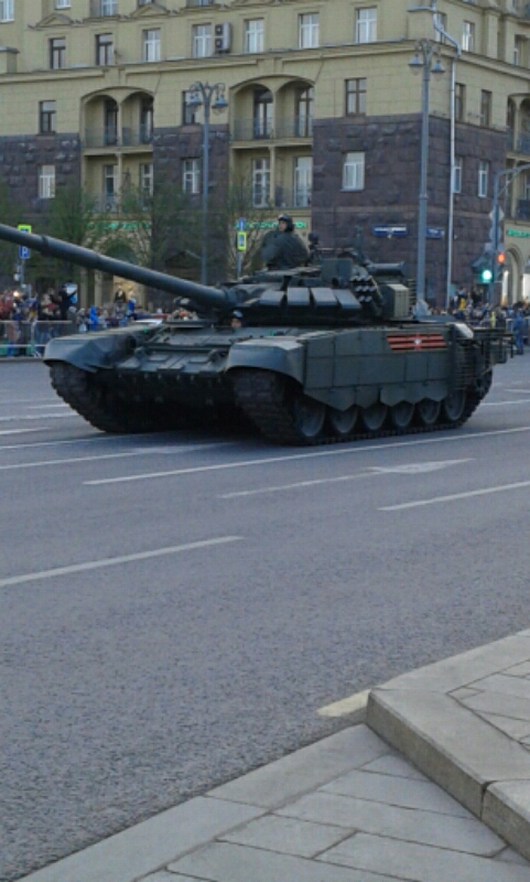 Бабуля на костыликах и с домброй у кремля на Никольской. Там танки на подходе, а нам чо