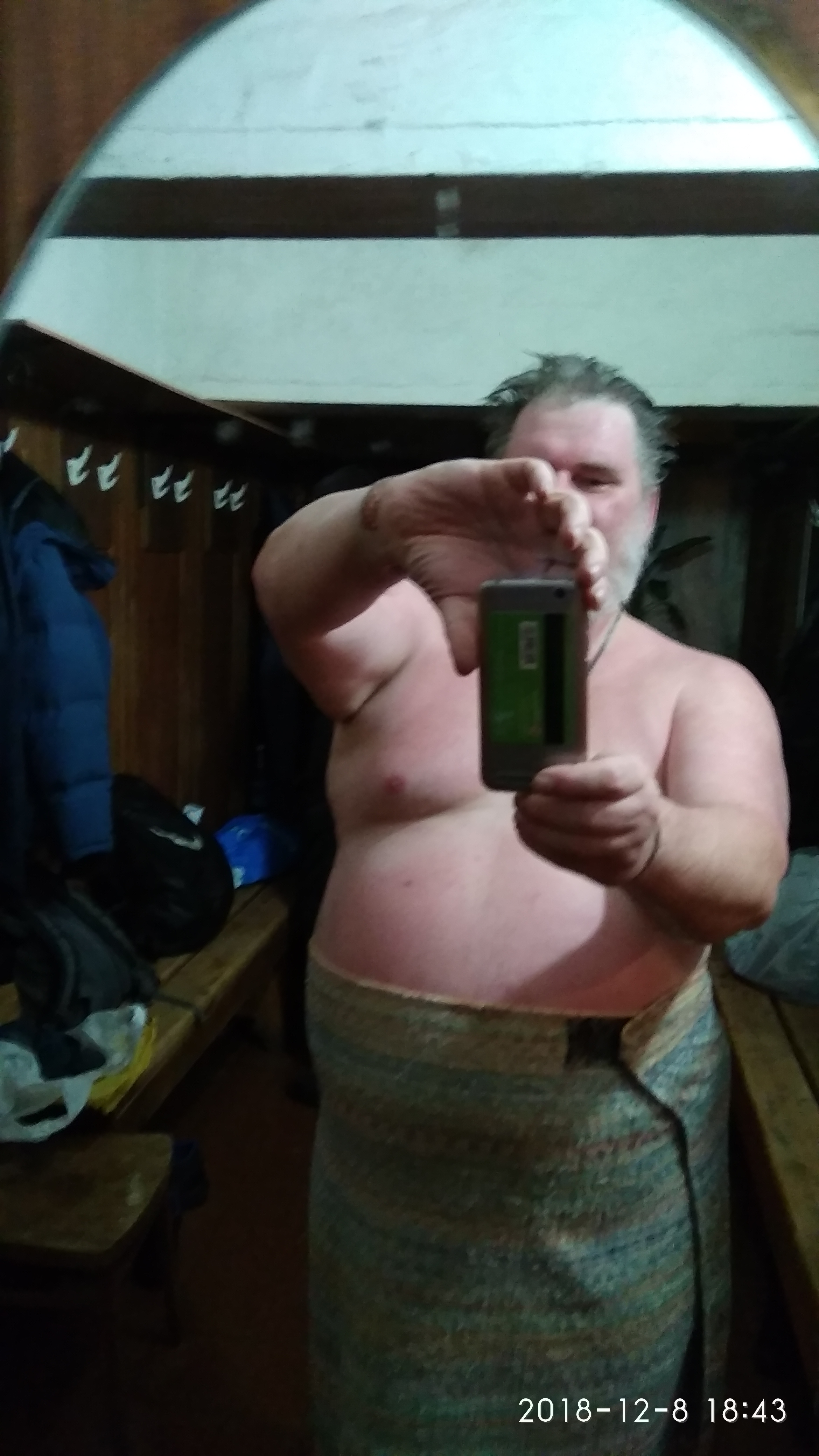 Вот пара фотографий от сегодняшнего похода. Прошу обратить внимание на лозунг у бани: