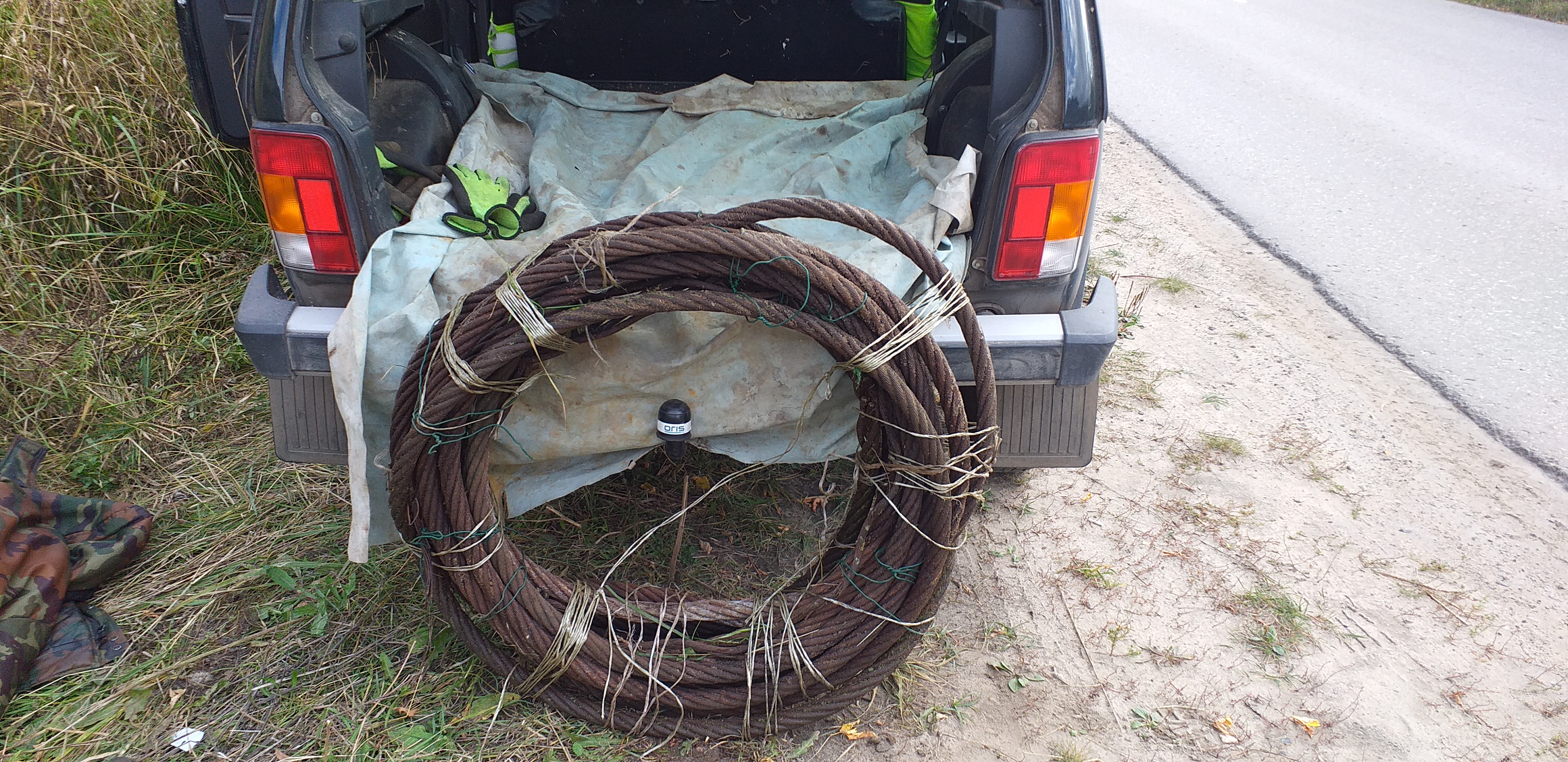 откопали трос. 50мм диаметр, вес 120 кг на 1600 руб. 4 часа потратили Исплевались все. За это время можно было накопать кг 200 железок. Чуть не надорвались!