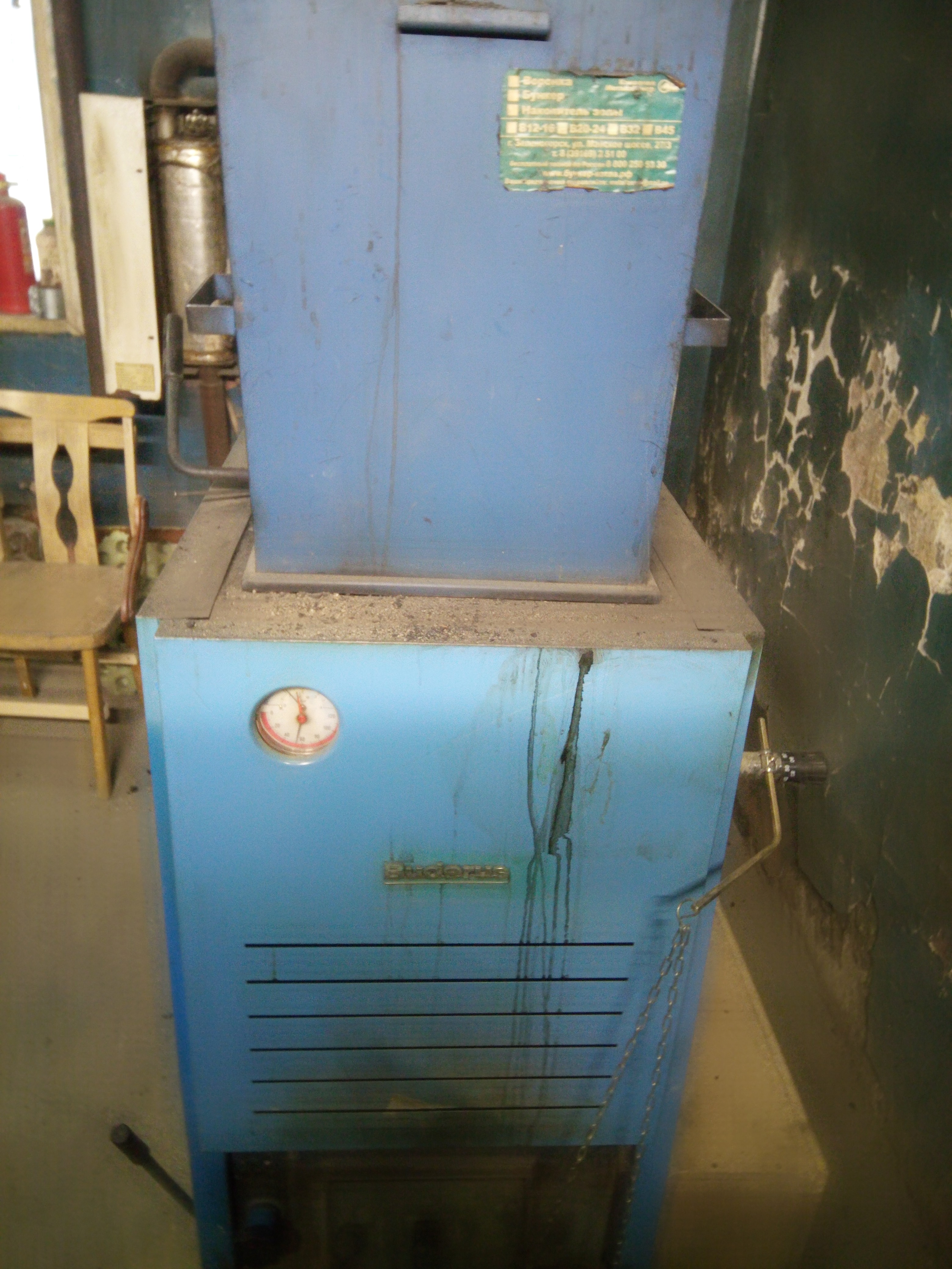 Опишу один обычный день. 7 января. Приехал на 10:00. Температура в цехе +16 Иду в кочегарку, температура на котле +60 Виден дополнительный бункер. Раньше его ставить смысла не было - уголь зависал прямо в нем. Вот в таком положении задвижки получается температура 60 градусов