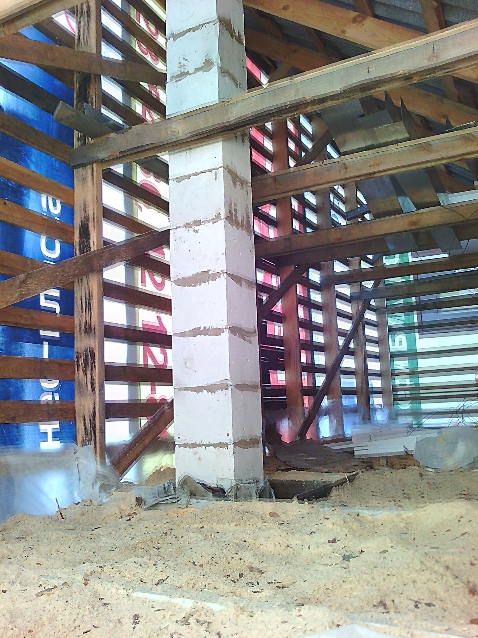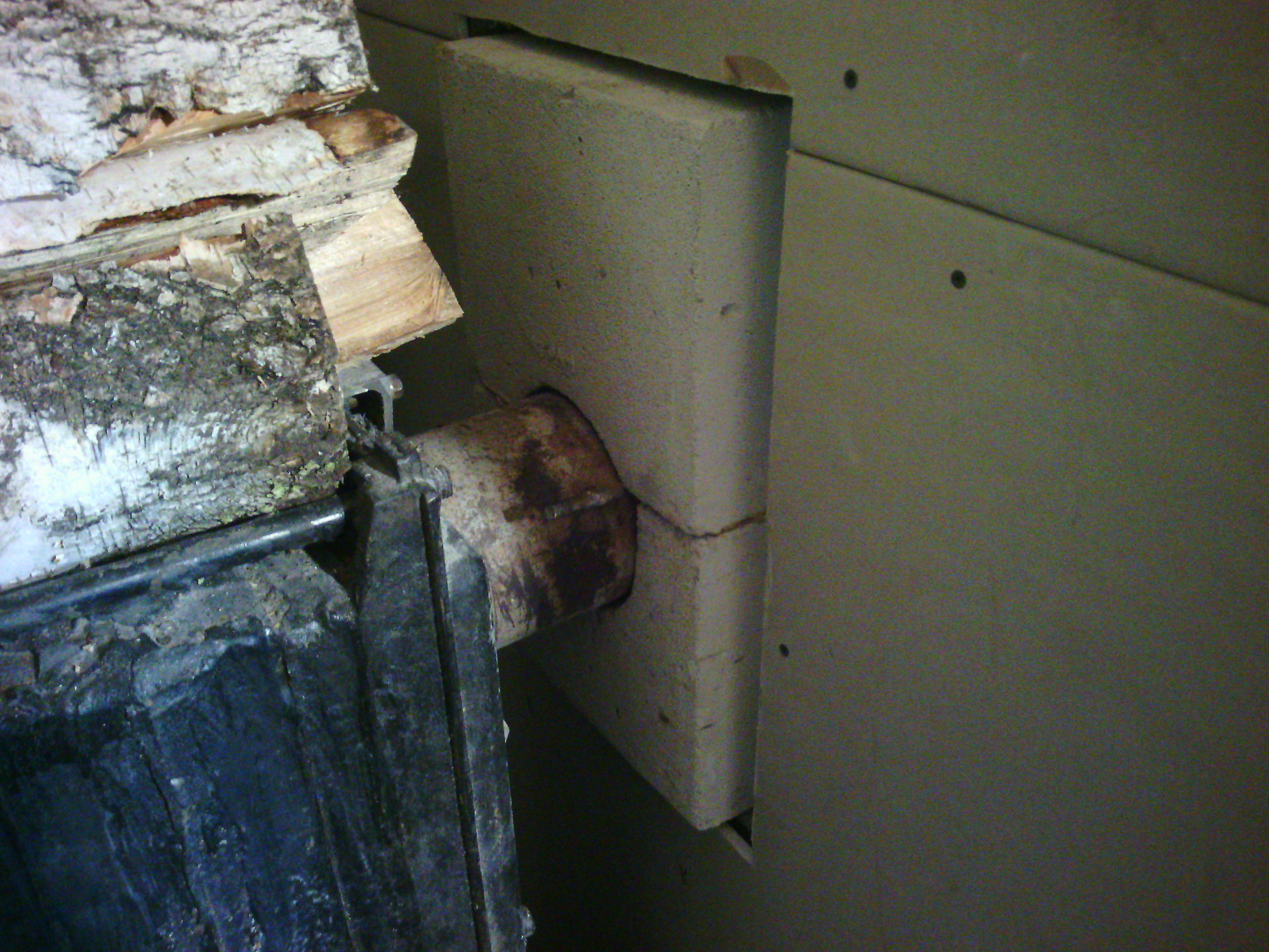 Да нечего особенно-то рассказывать. Вроде на фотках всё видно. Сам дымоход занял времени немного, около трёх дней вечерами после работы. Пилили блок пополам (поперёк) обыкновенной ножовкой. Пилится легко. Убил, правда, одну ножовку совсем. Зубья стачиваются. Когда увидел в строймаге ножовку специальную, для газоблоков предназначенную, допилить оставалось блока два или три. Но мы к тому времени уже нашли решение вопроса. Пилу сделали из полотна ленточной пилорамы. Работает на ура.