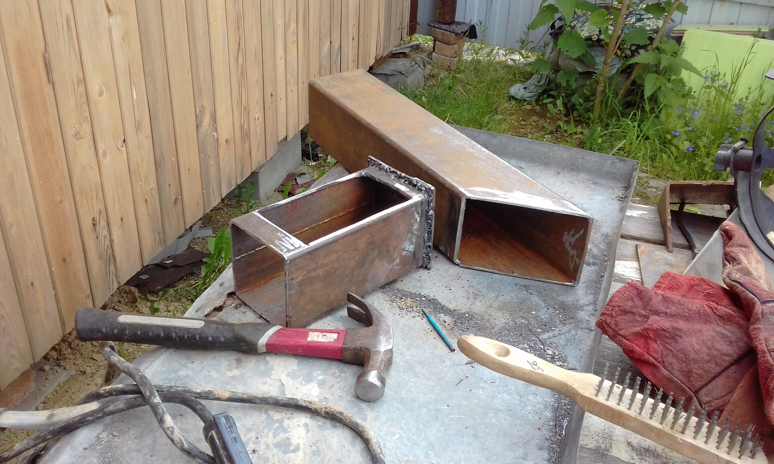 Сваял реактивную пиролизную печь для походов из квадратной трубы 100х100х4 из двух обрезков по 500 мм. Заехал рынок приглядеть что-нибудь и сразу эти два обрезка мне попались. Как будто ждали меня. Метр со скидкой обошёлся в 500 рупий. Вес печки 7 кг. Тяга великолепная. Тихо урчит как вода течёт. Дыма нет.
