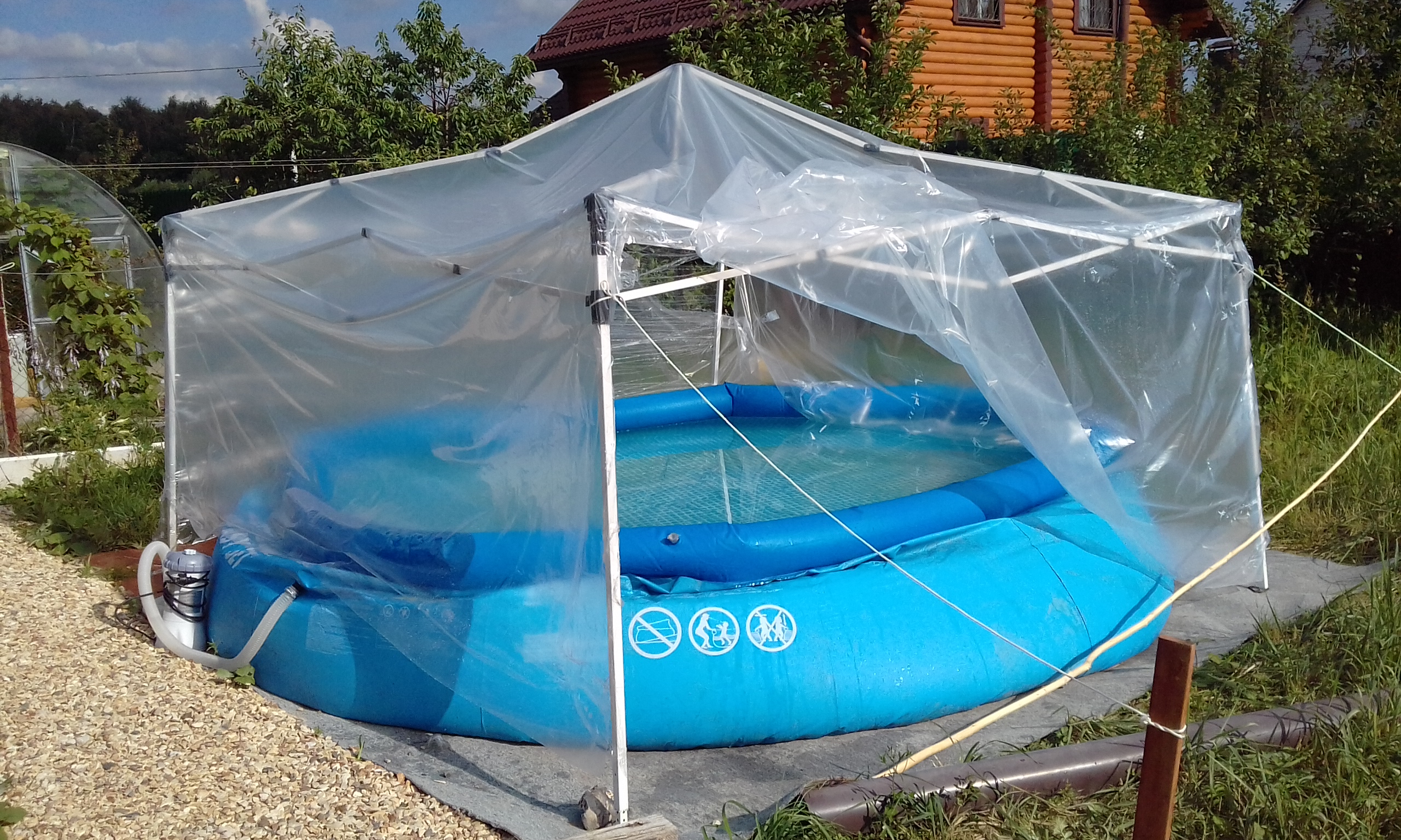 С бассейном нам дико повезло. Соседка с дочерью продают трёшку, покупают однушку, а на остаток платят за ипотеку дочери. В общем соседка избавляется от вещей. Кроме бассейна с насосом-фильтром грубой очистки нам достался хороший журнальный столик. :smile1:
