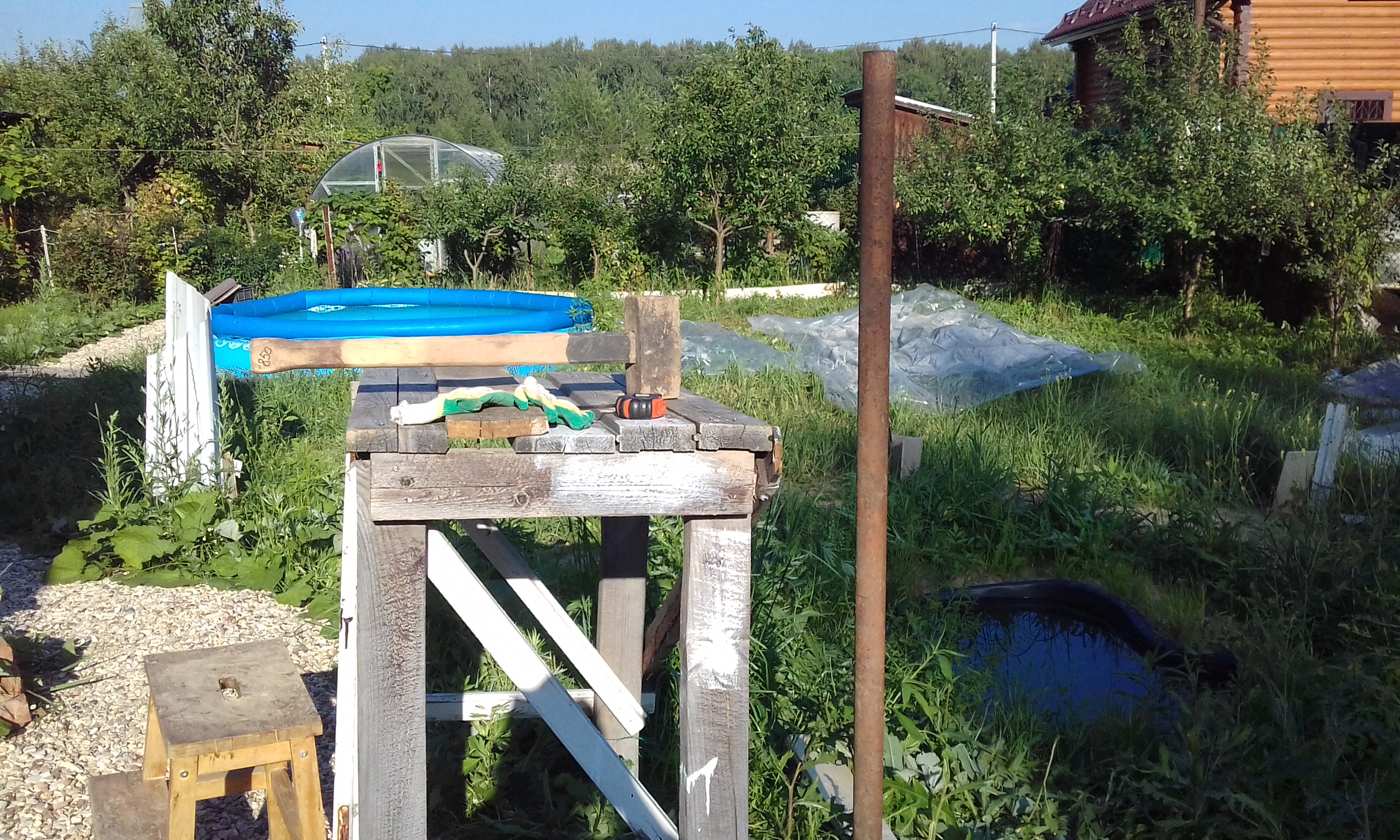 Устроили бассейн. Погоды стоят жаркие. 30 град. в тени. Воду очищаем 37% перекисью водорода. Вода чистая уже две недели.
