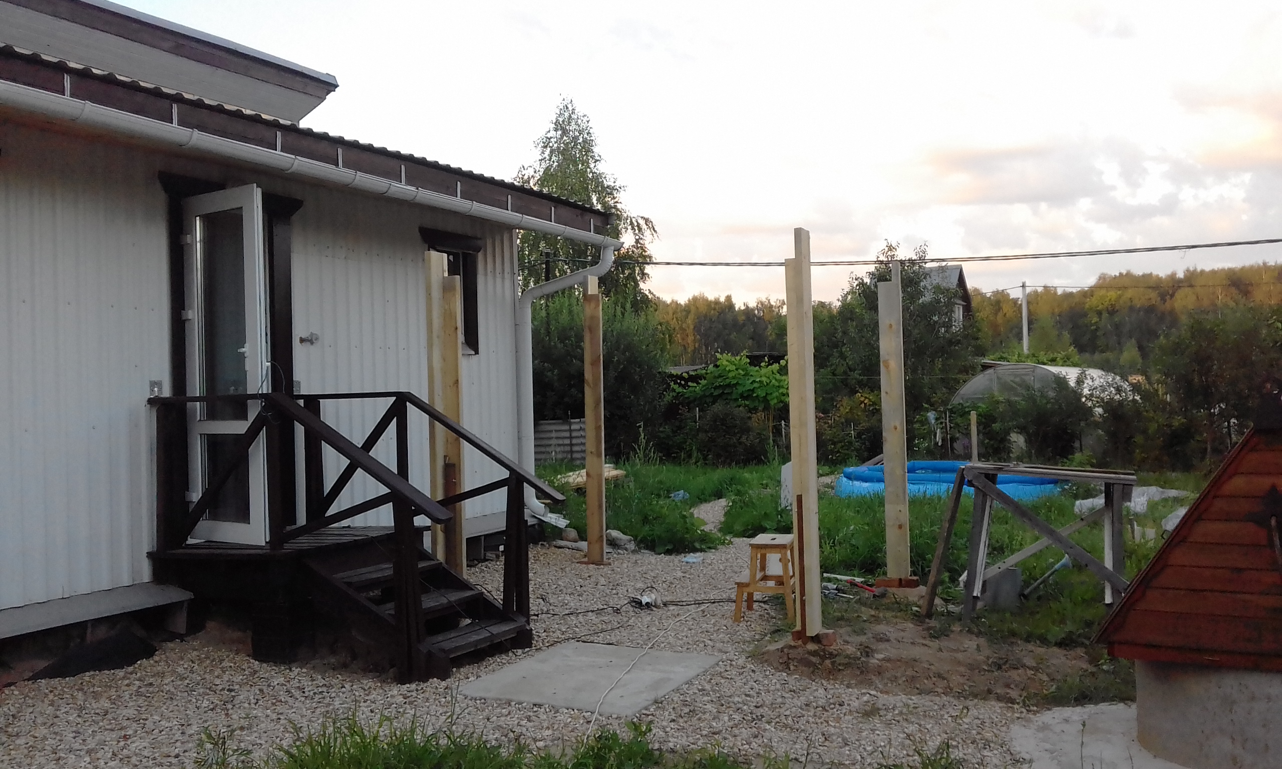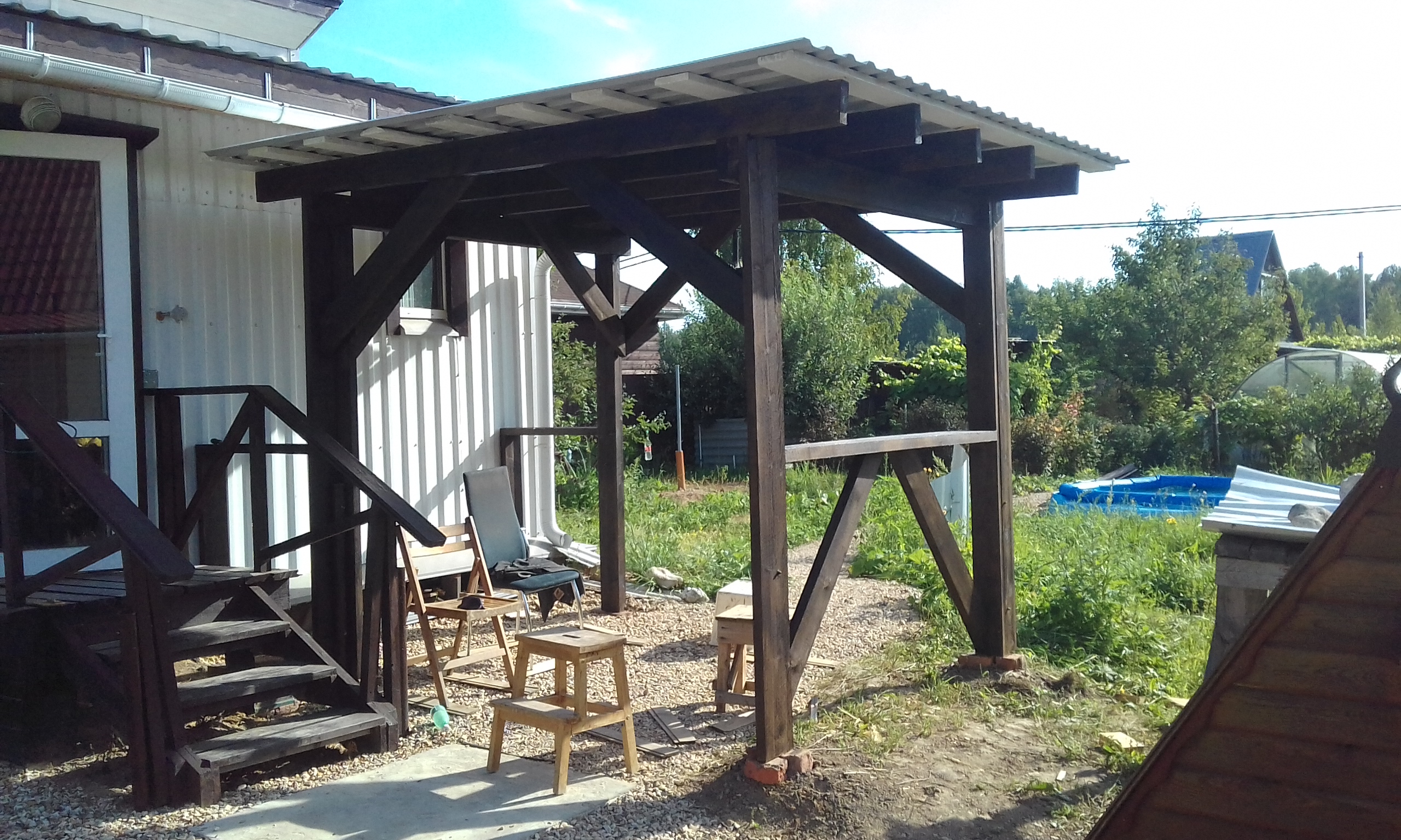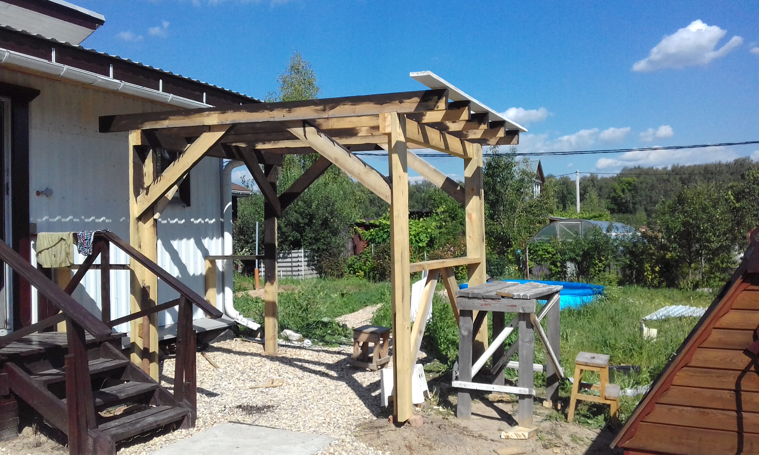 Завершил строительство навеса-беседки.