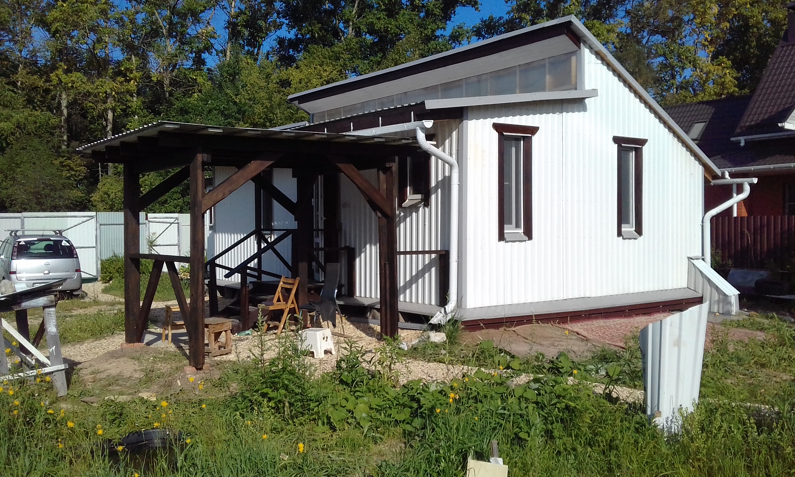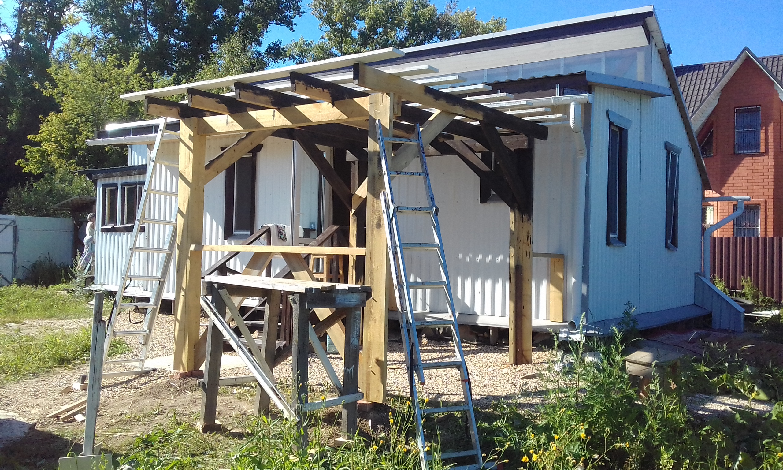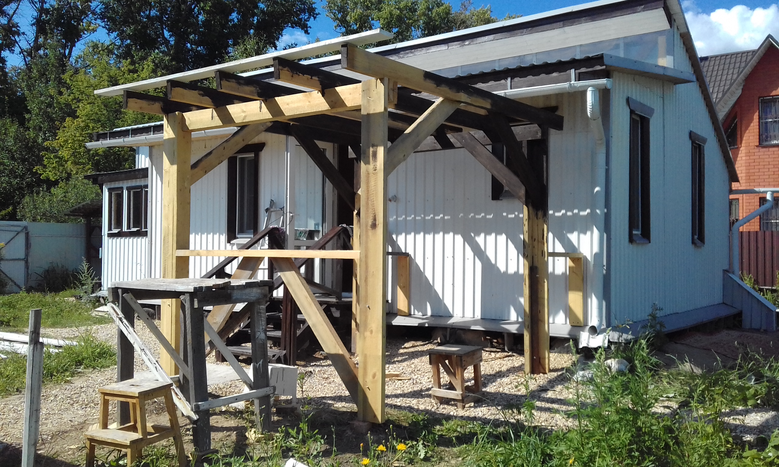 Завершил строительство навеса-беседки.