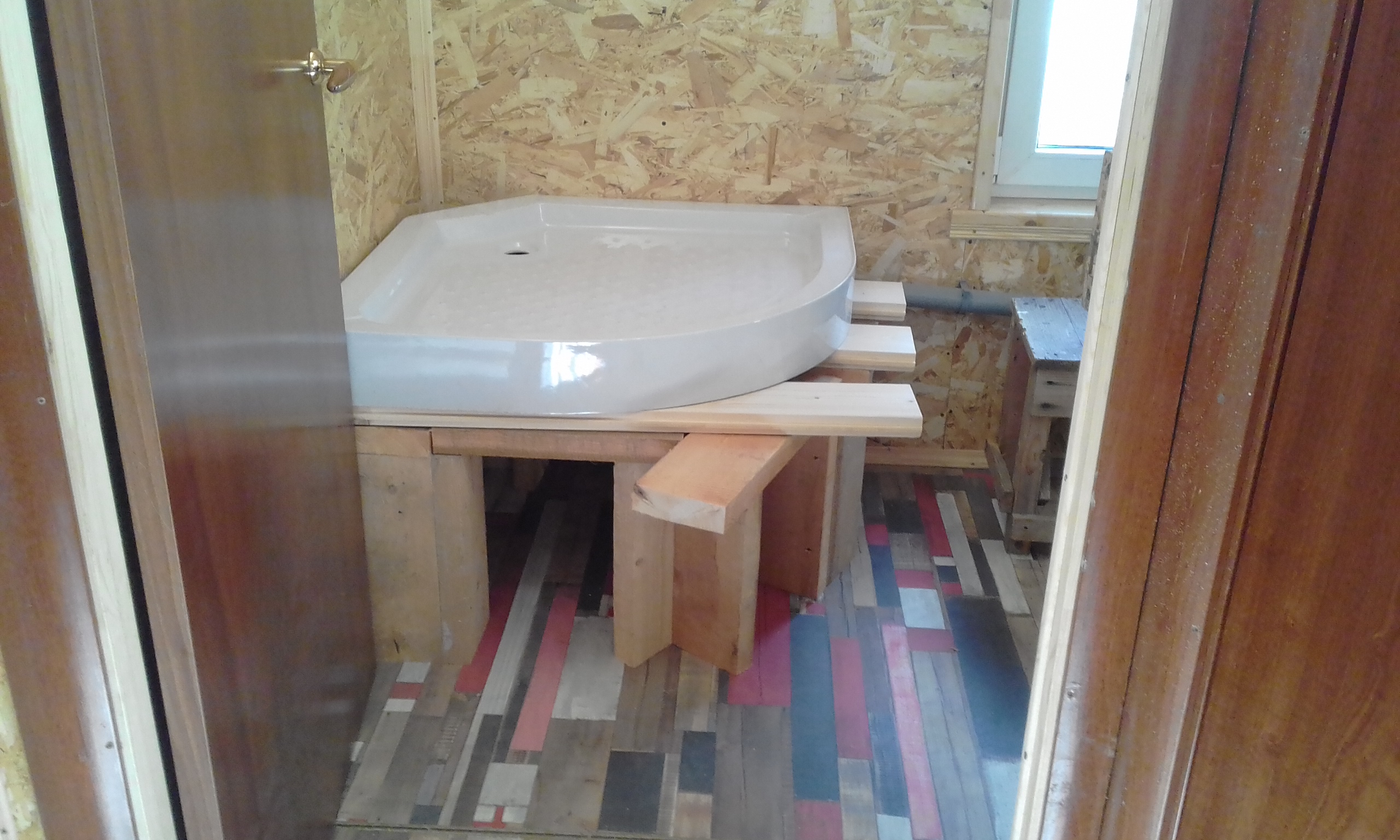 Выполнил каркас подстолья и установил на него столешницу с врезанной в неё раковиной умывальника.Прикинул, что получается с подставкой под поддон душа. Канализационная труба от вывода канализации до стока из душа в следствии положенного уклона в 3 % поднялась на 48 см. Подставка получается высотой 60 см. Не айс. С такой высоты можно и звездануться. Да и куда лесенку к поддону убирать?Выход предложила сначала жена, а потом Генадич утвердил меня в этом решении.