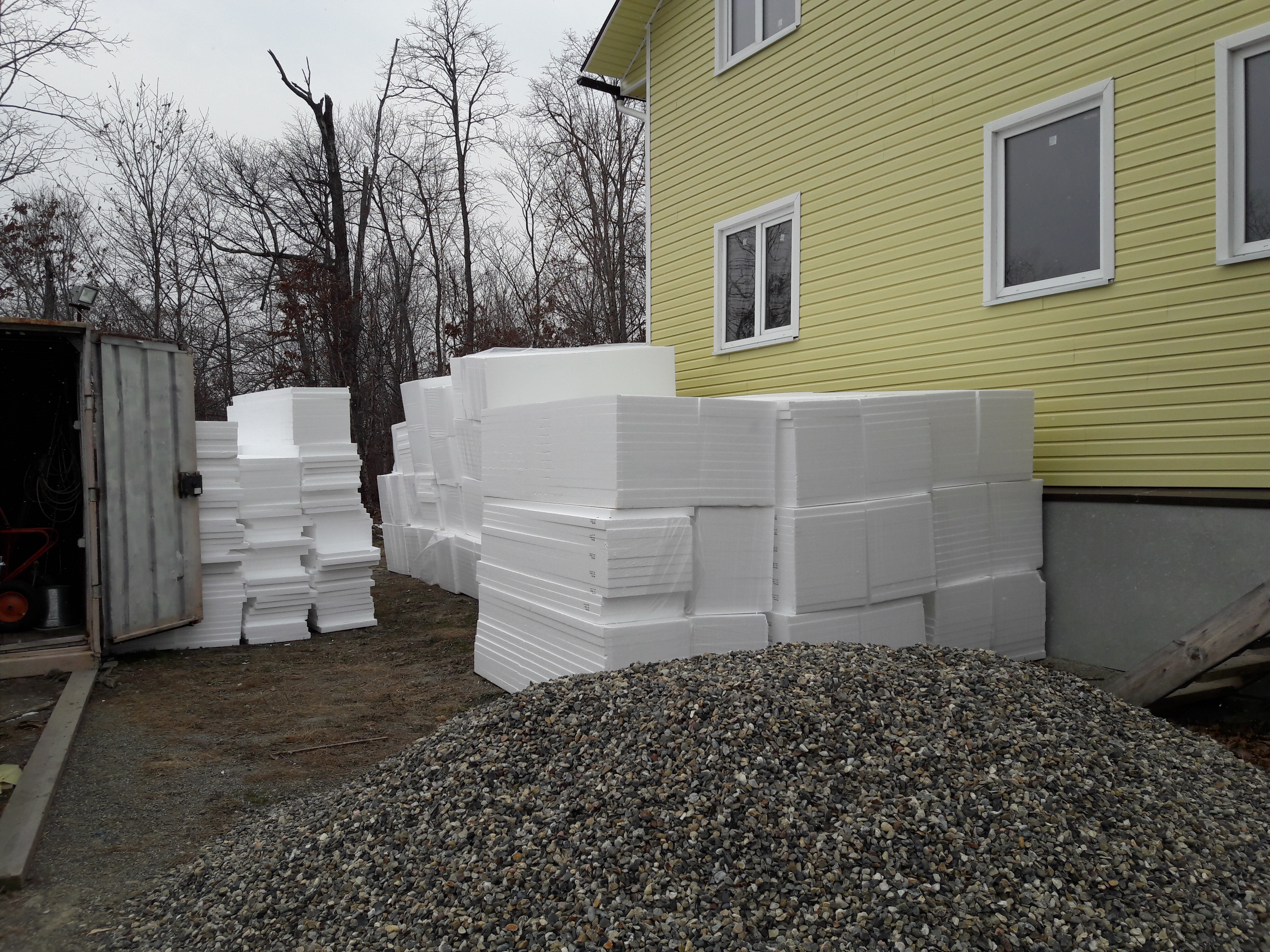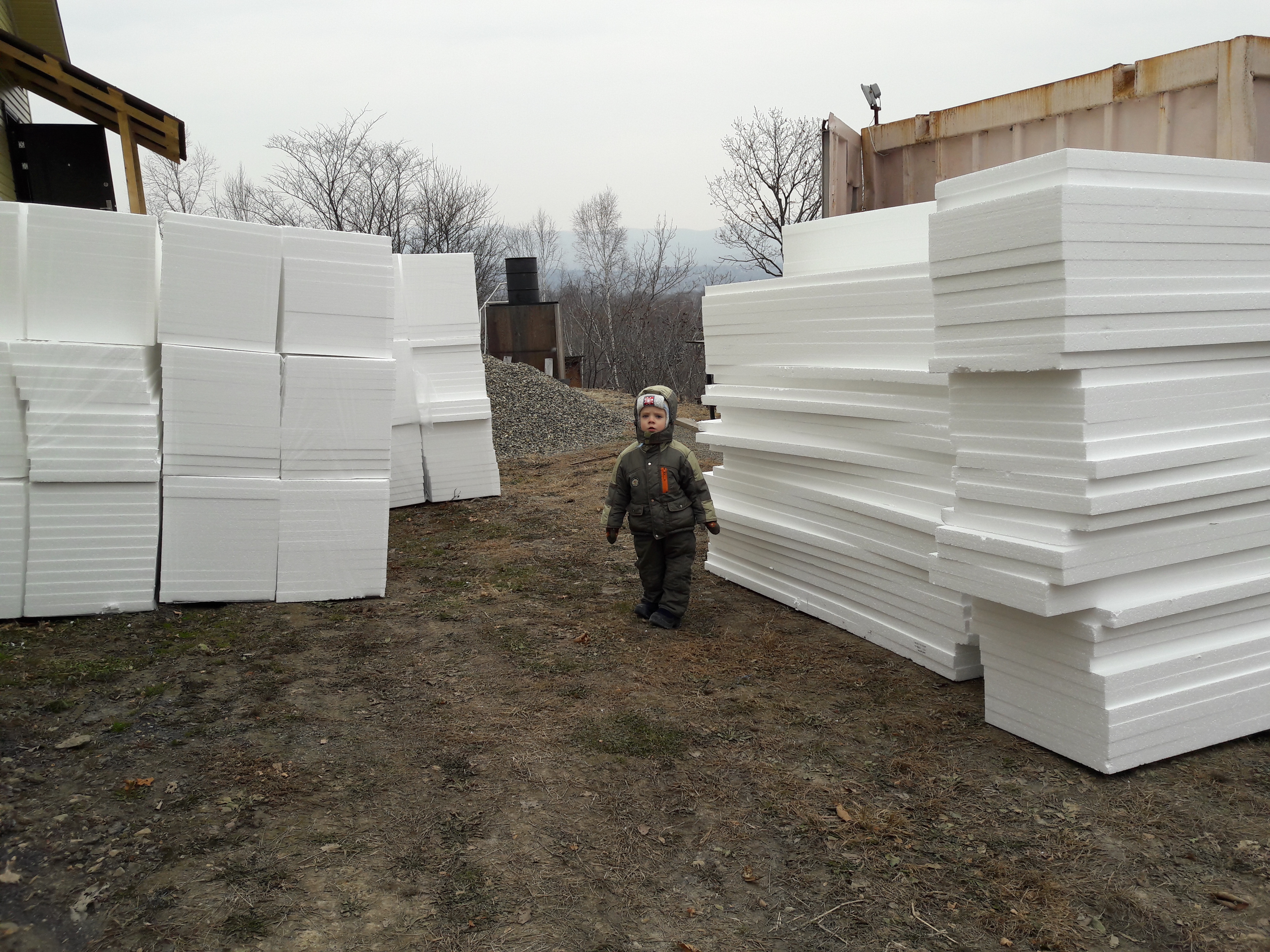 А теперь к стройке. Привезли значит мне на праздник 48 кубов пенопласта... хорошего, белого