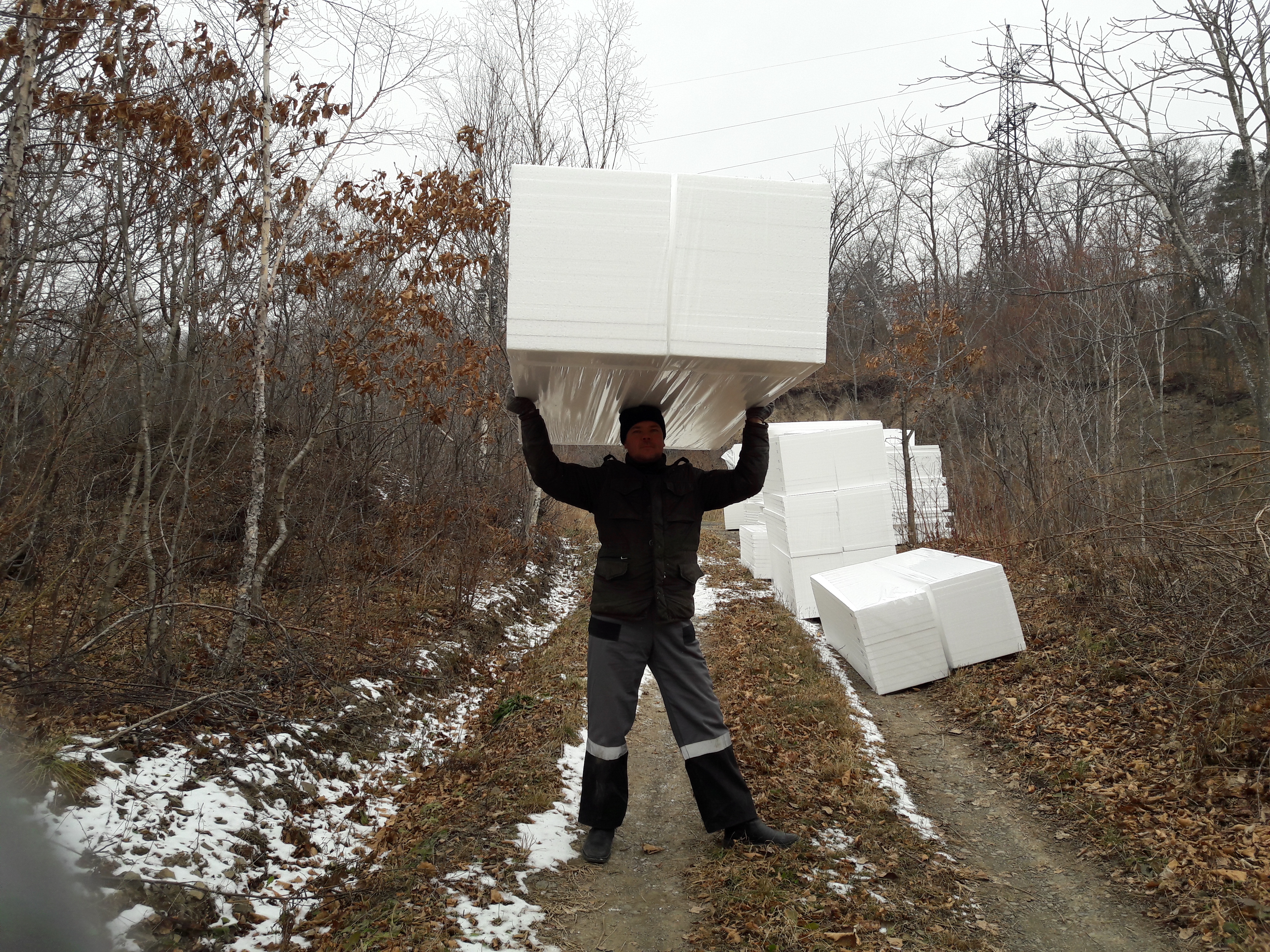 С другой стороны как здорово что я успел завезти пенопласт!!!! это же сказка! На следующий день буквально все замело, уже не заедешь.