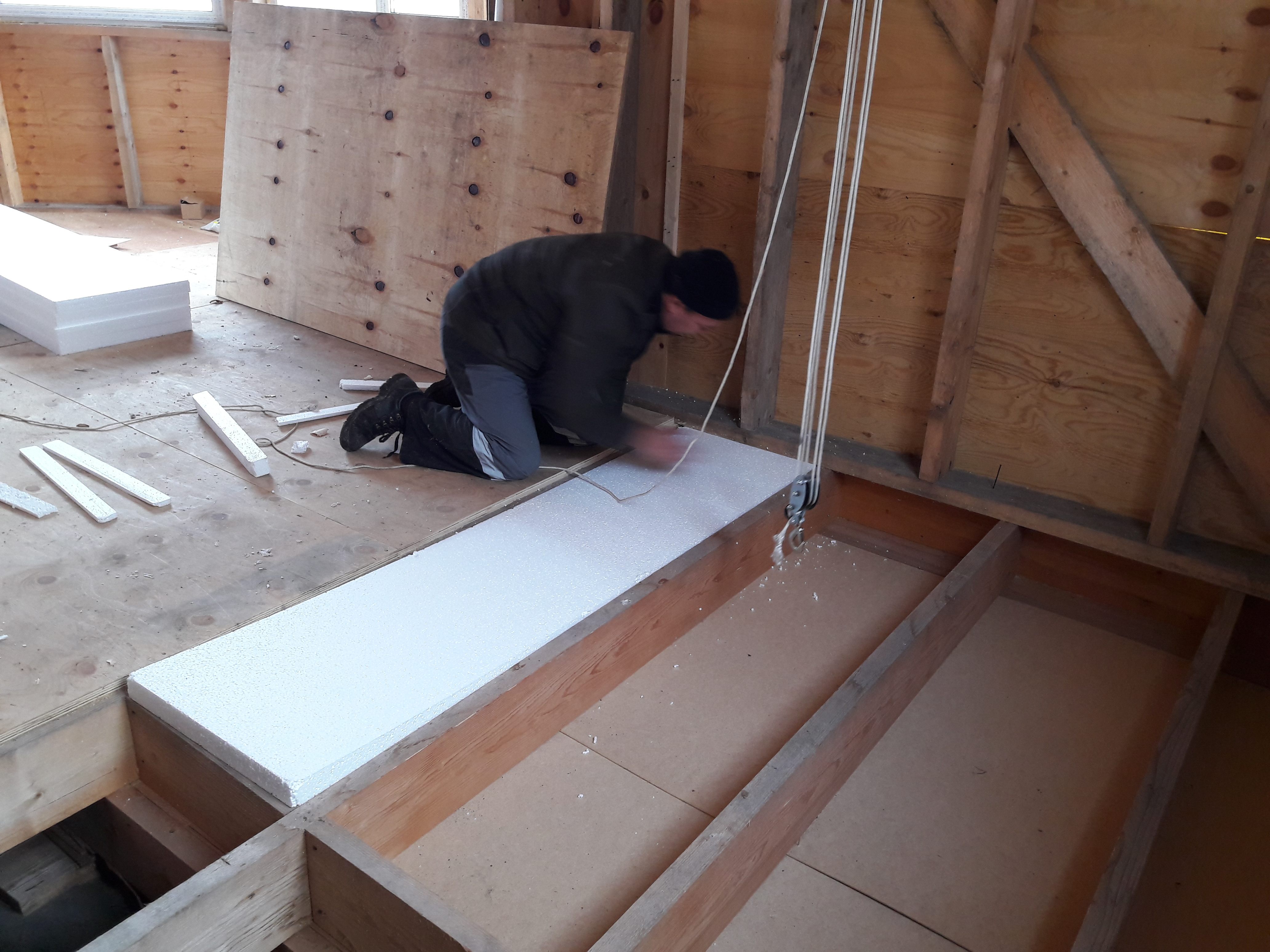 И началось! Как давно я этого не делал! как чудесно режется пенопласт, как здорово его укладывать! Че угодно, лишь бы не снаружи...