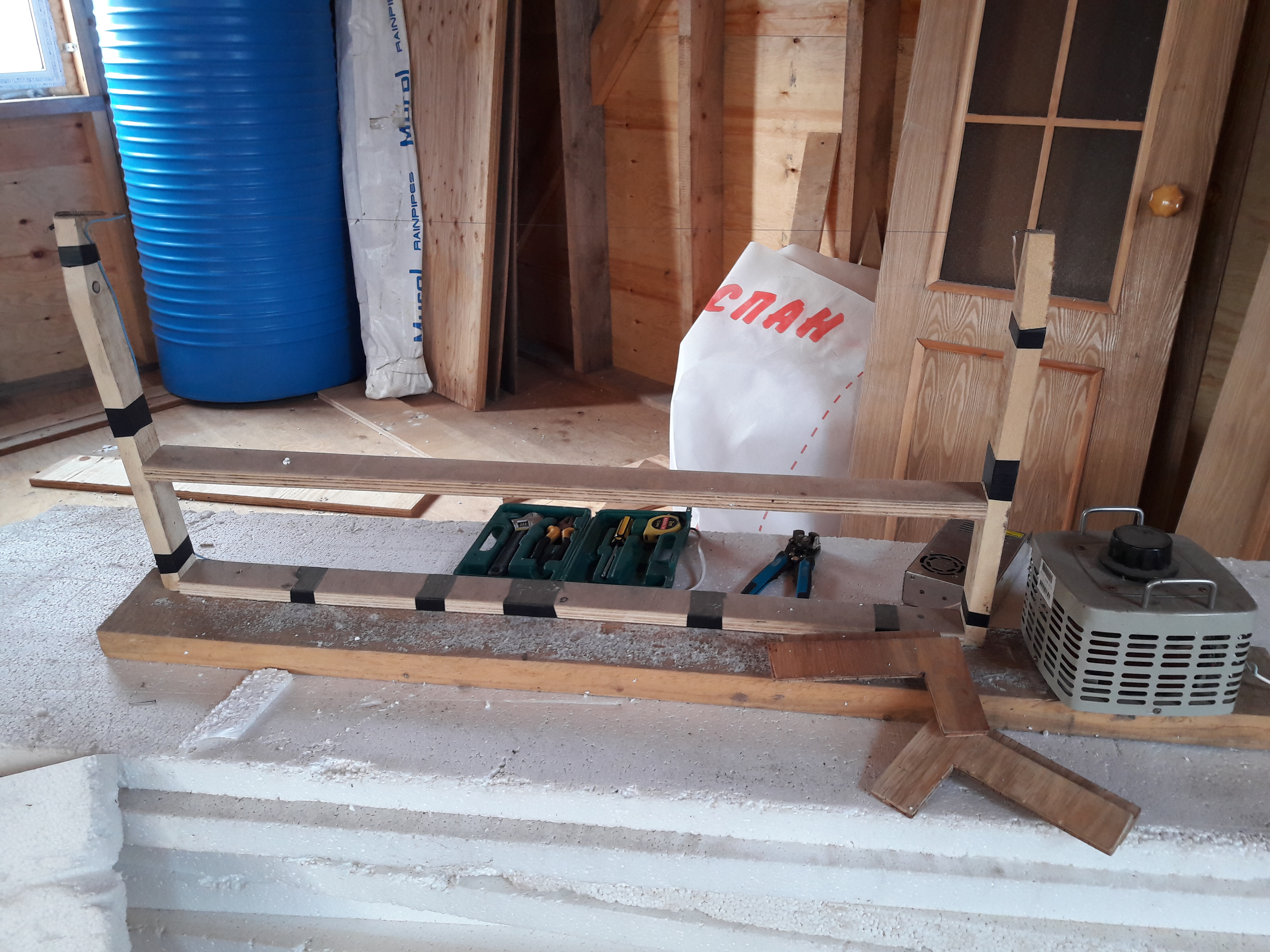 Ну и вытащил из закромов свою любимую "козу" для резки пенопласта. Почему-то навернулся мой модный блок питания, вытащил ЛАТР, этот деревянненький, правда без гальванической развязки. Но я и не на земле стою поэтому сильно ебом не токнет