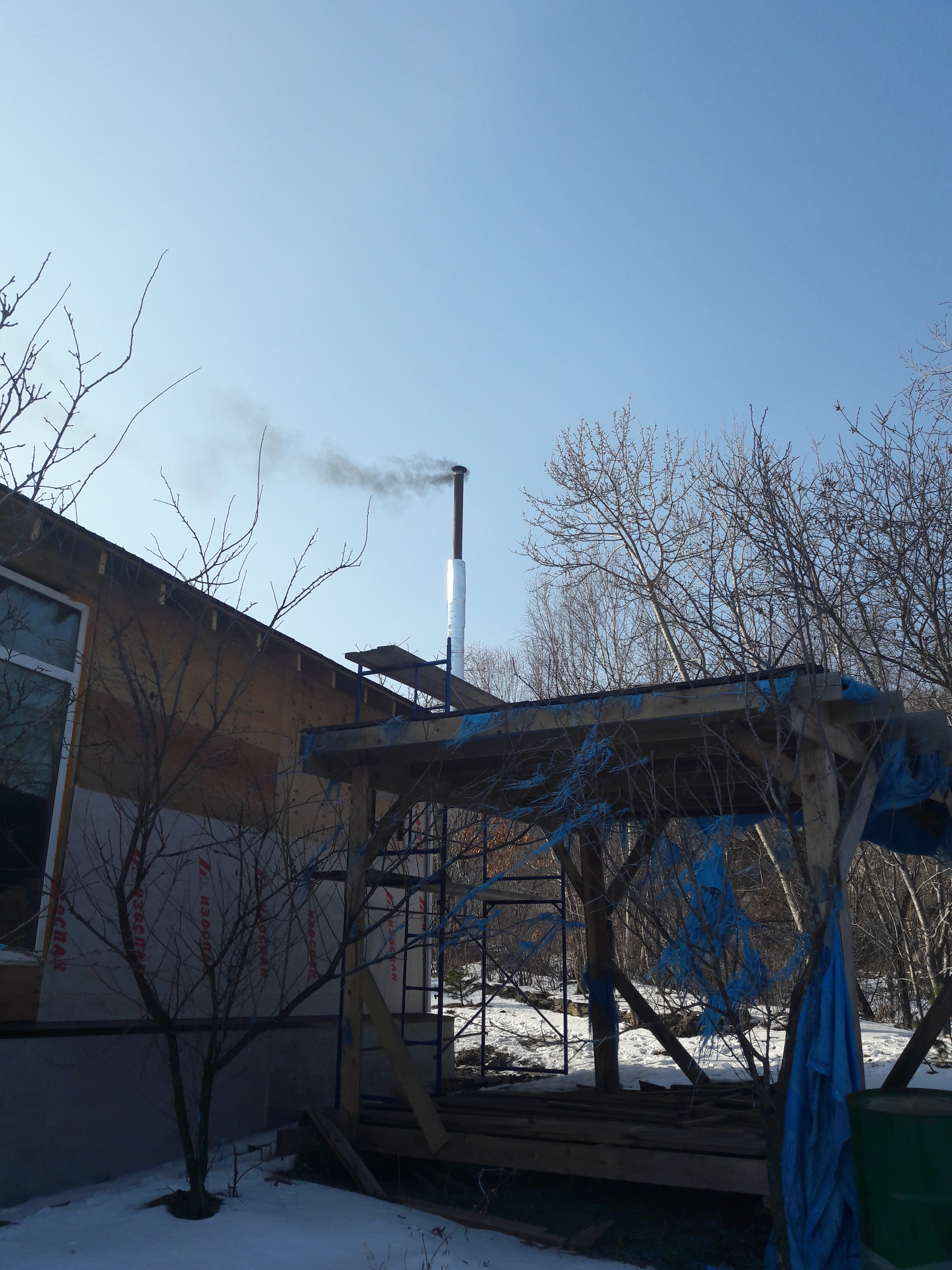 Начал утеплять трубу по "Денисовым мотивам"