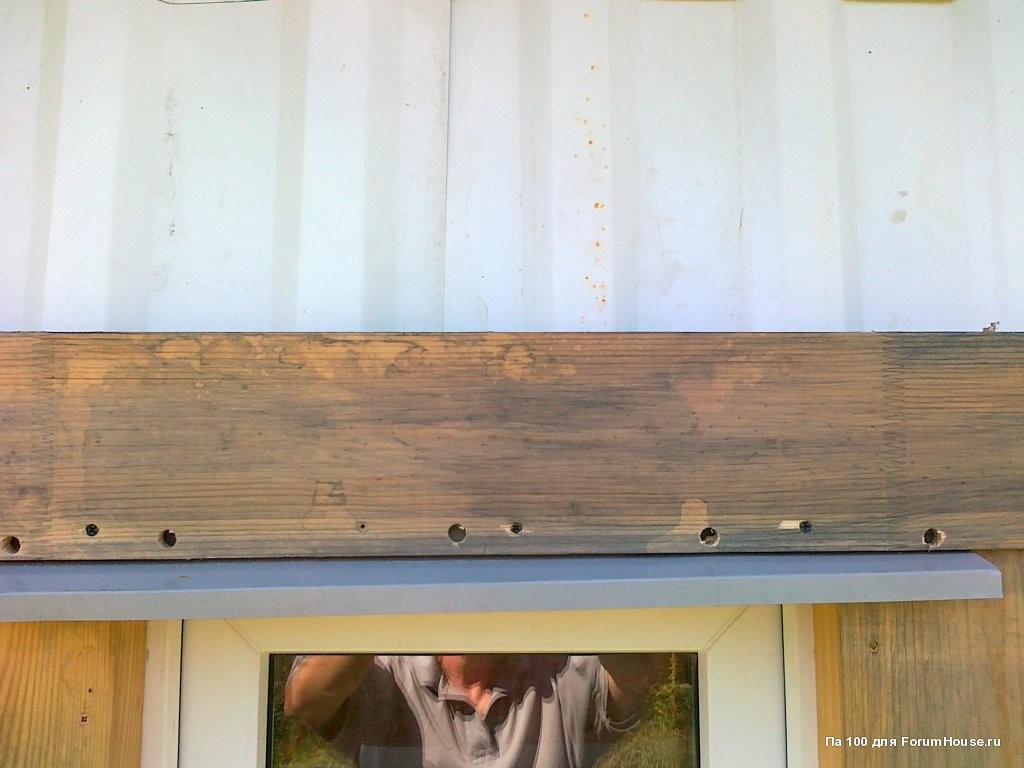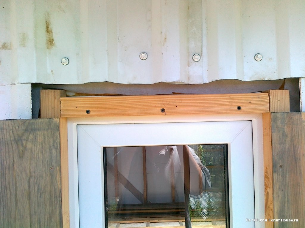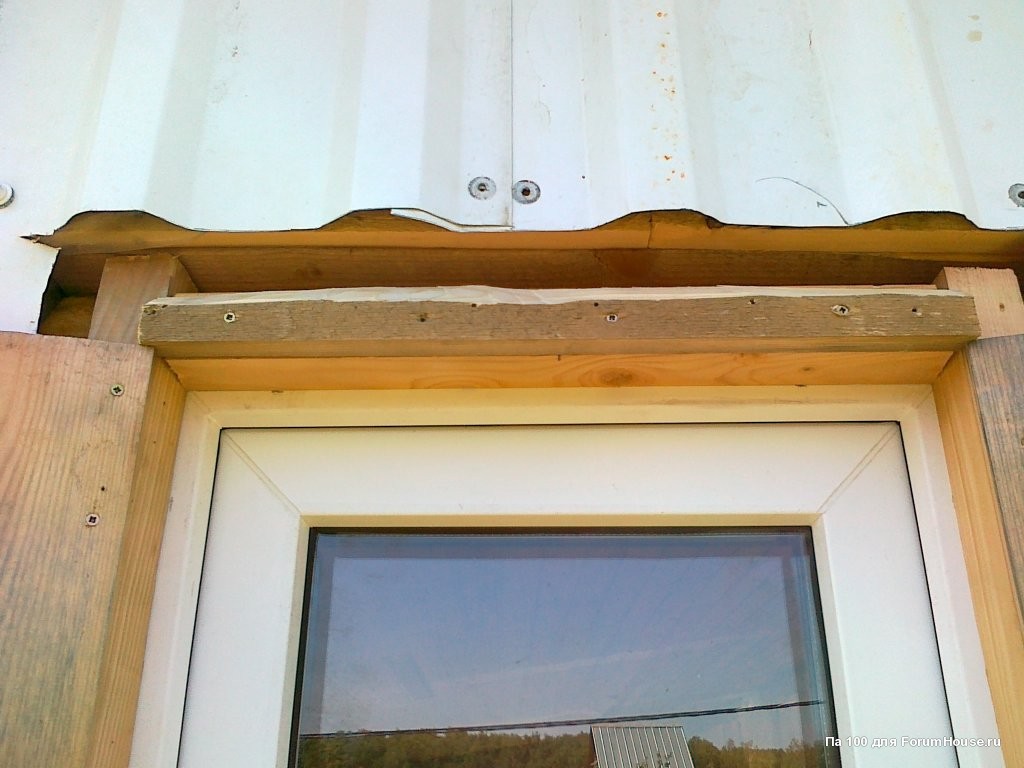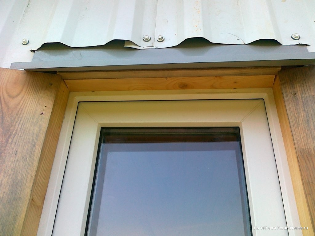 Для установки козырьков над окнами делал надрезы в обшивке стен.