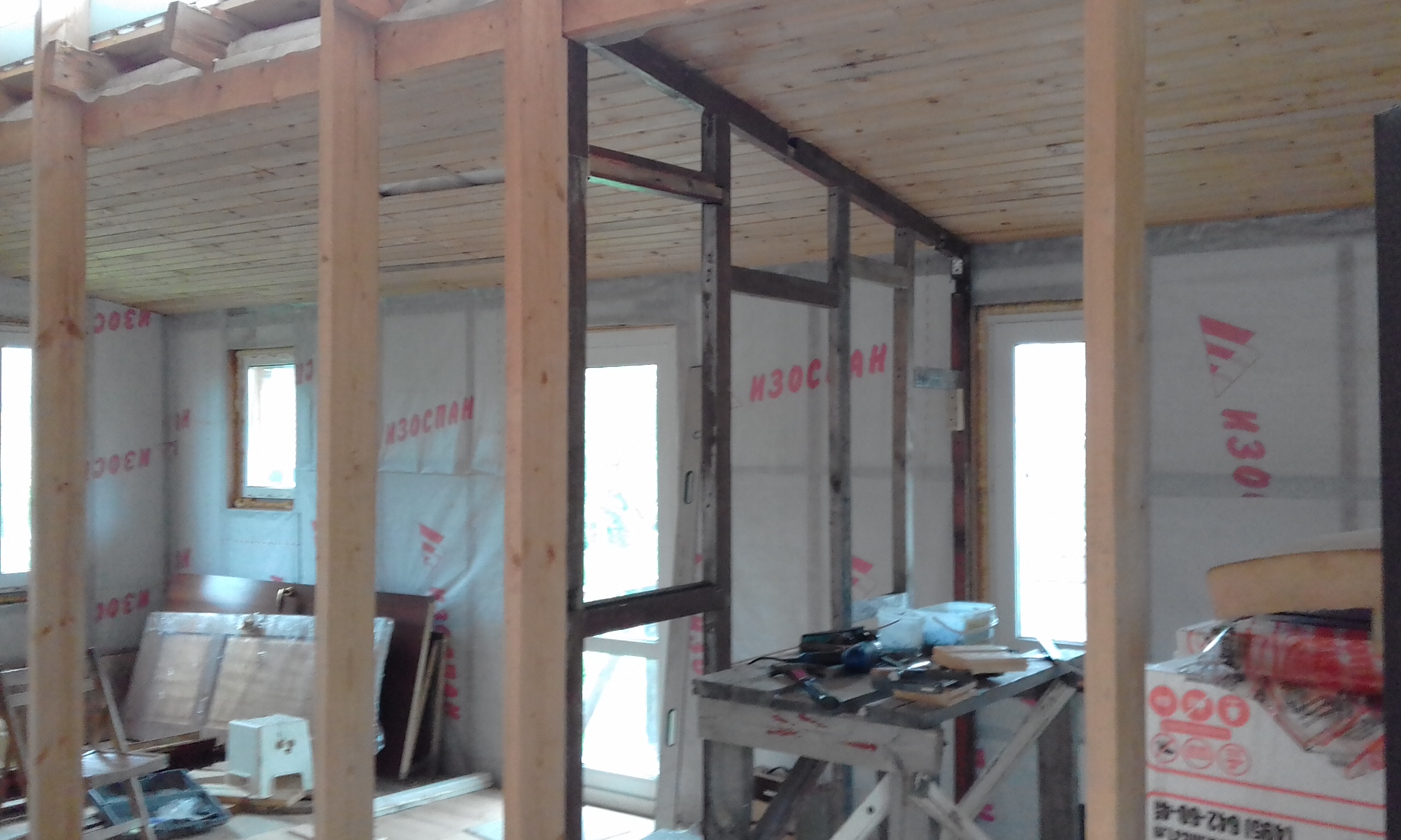 Выполнил каркас перегородки в мою комнату из дармовых материалов (с помойки).