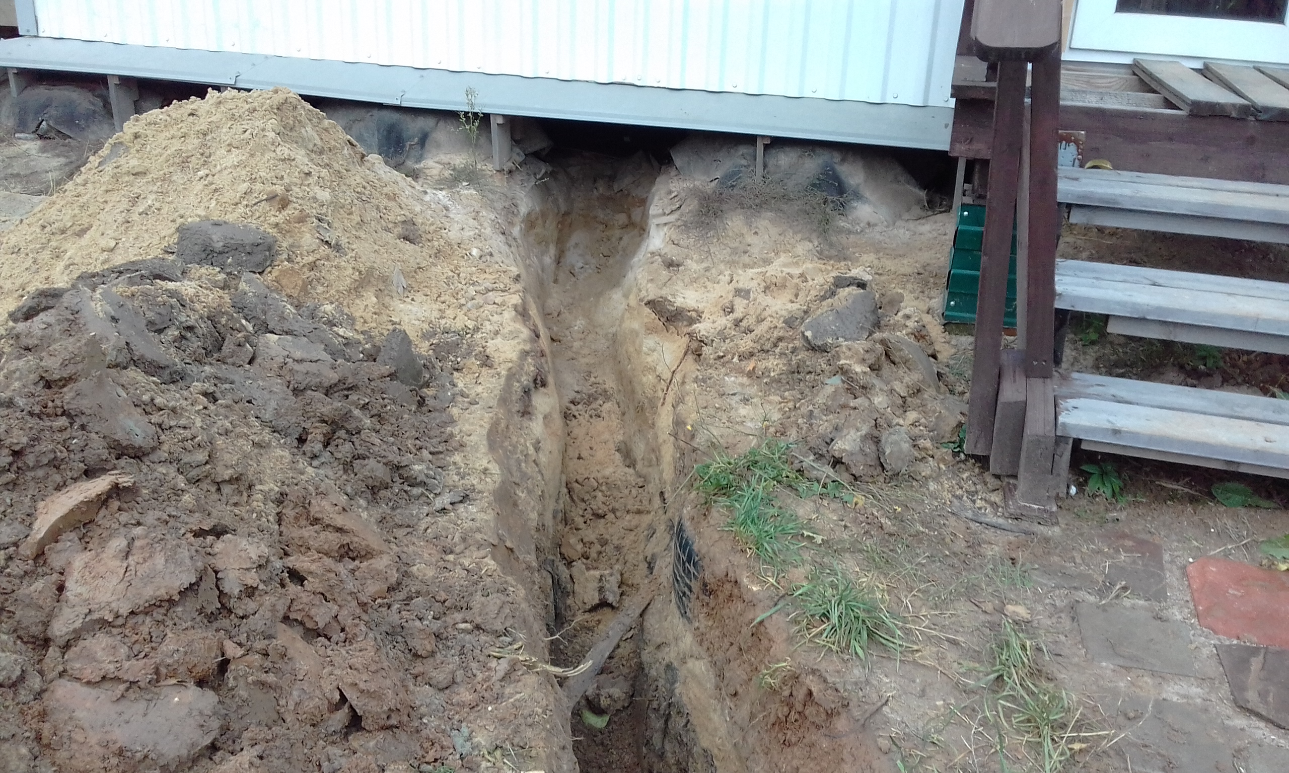 Отрыл траншею от колодца до дома и обкопал колодец на глубину 70 см. Может завтра углублю траншею, полностью откопаю второе кольцо, нанесу на него гидроизоляцию и ещё некоторые советуют полиэтиленовой плёнкой кольца обмотать.