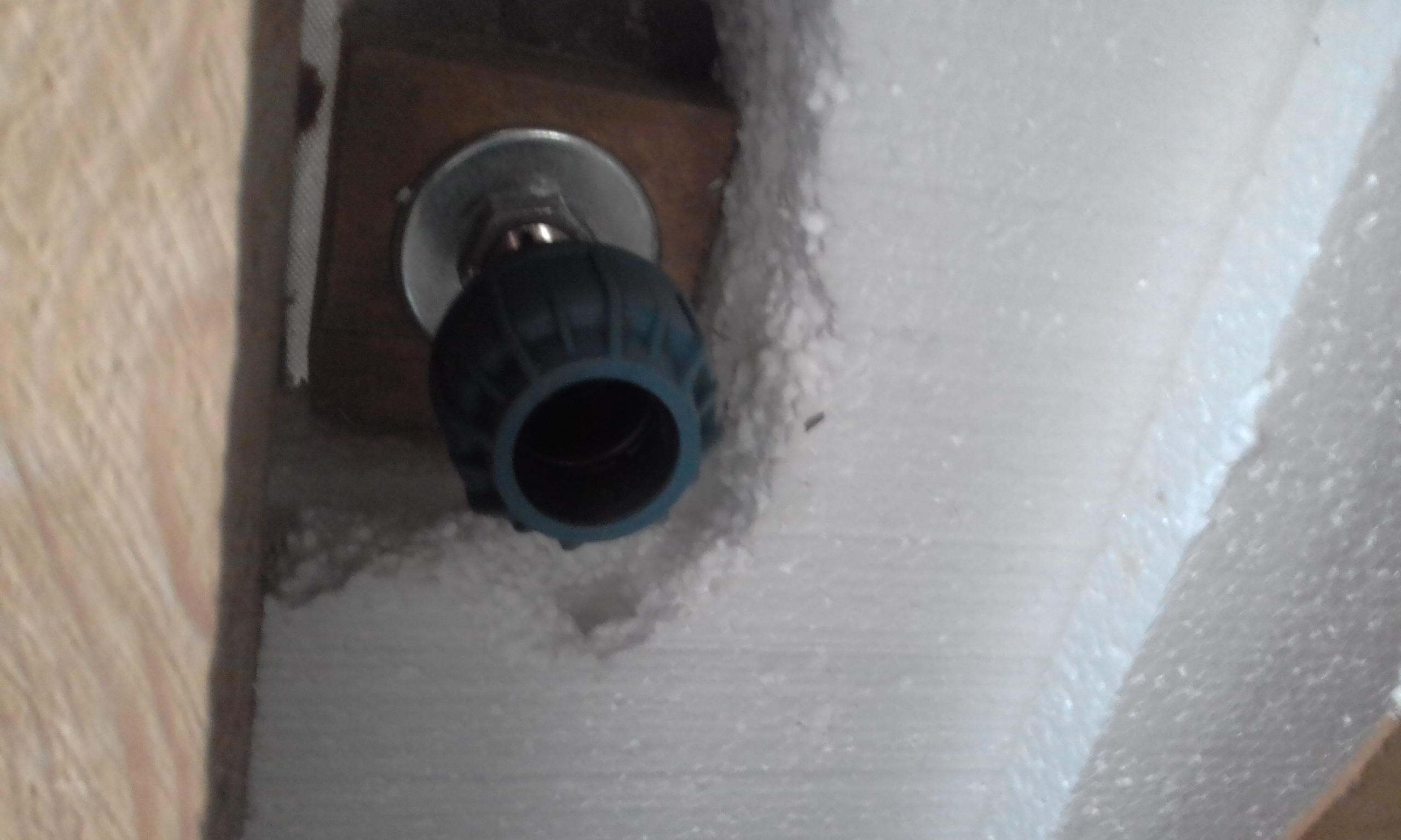 Соединил вертикальный и горизонтальный участок трубопровода фитинг-уголком.