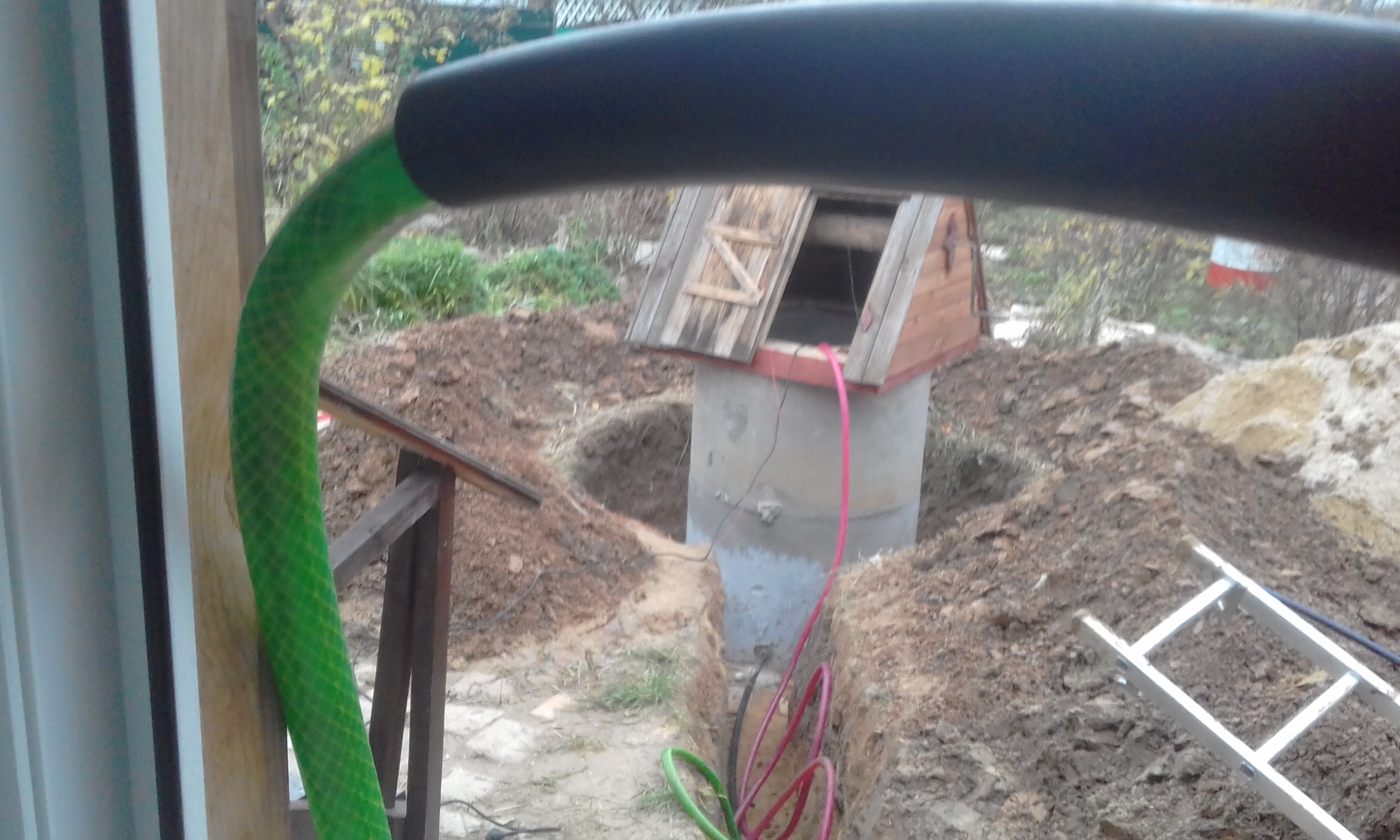 Провёл испытания трубопровода проливкой водой из колодца. Использовал старый грязевик-погружник. Испытания показали - протечек нет.