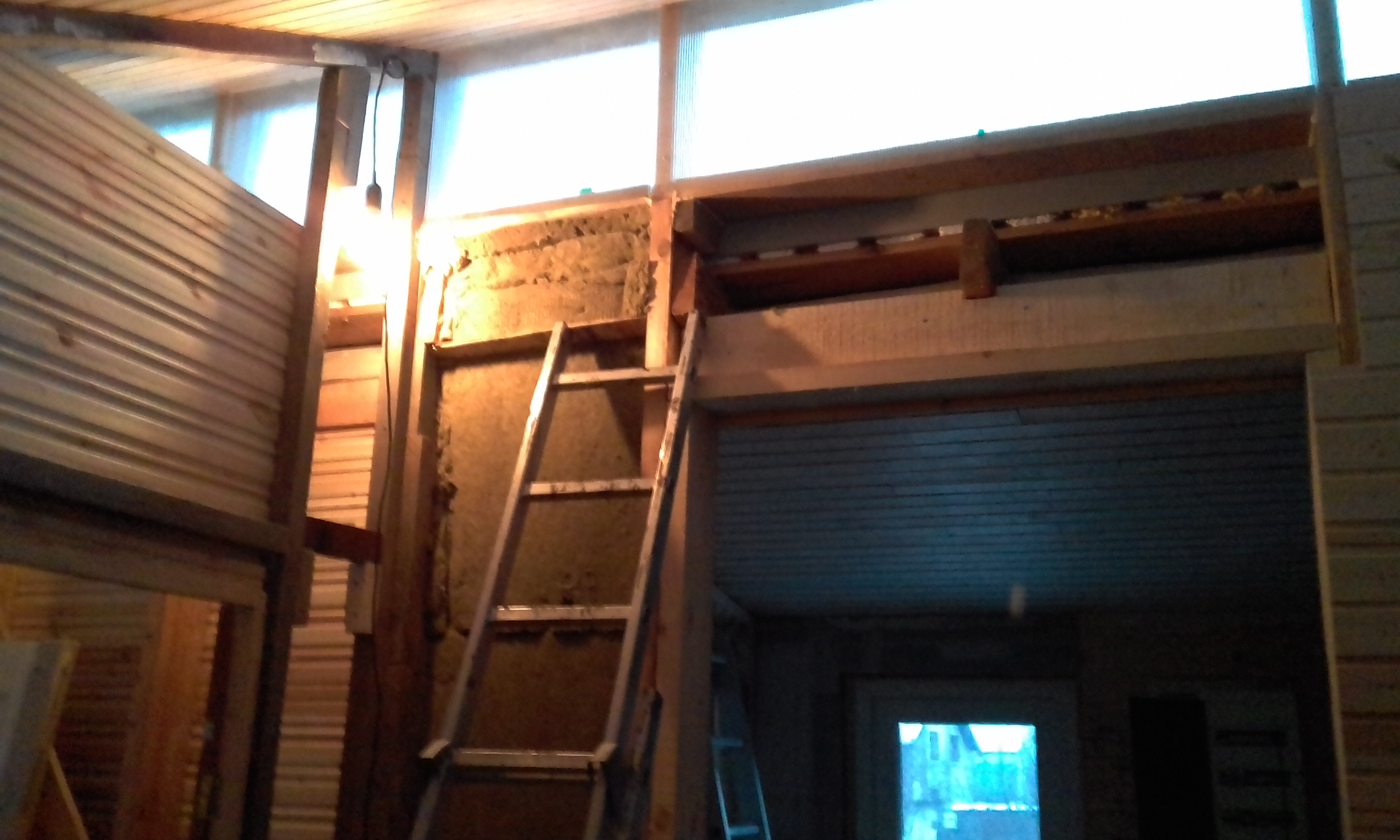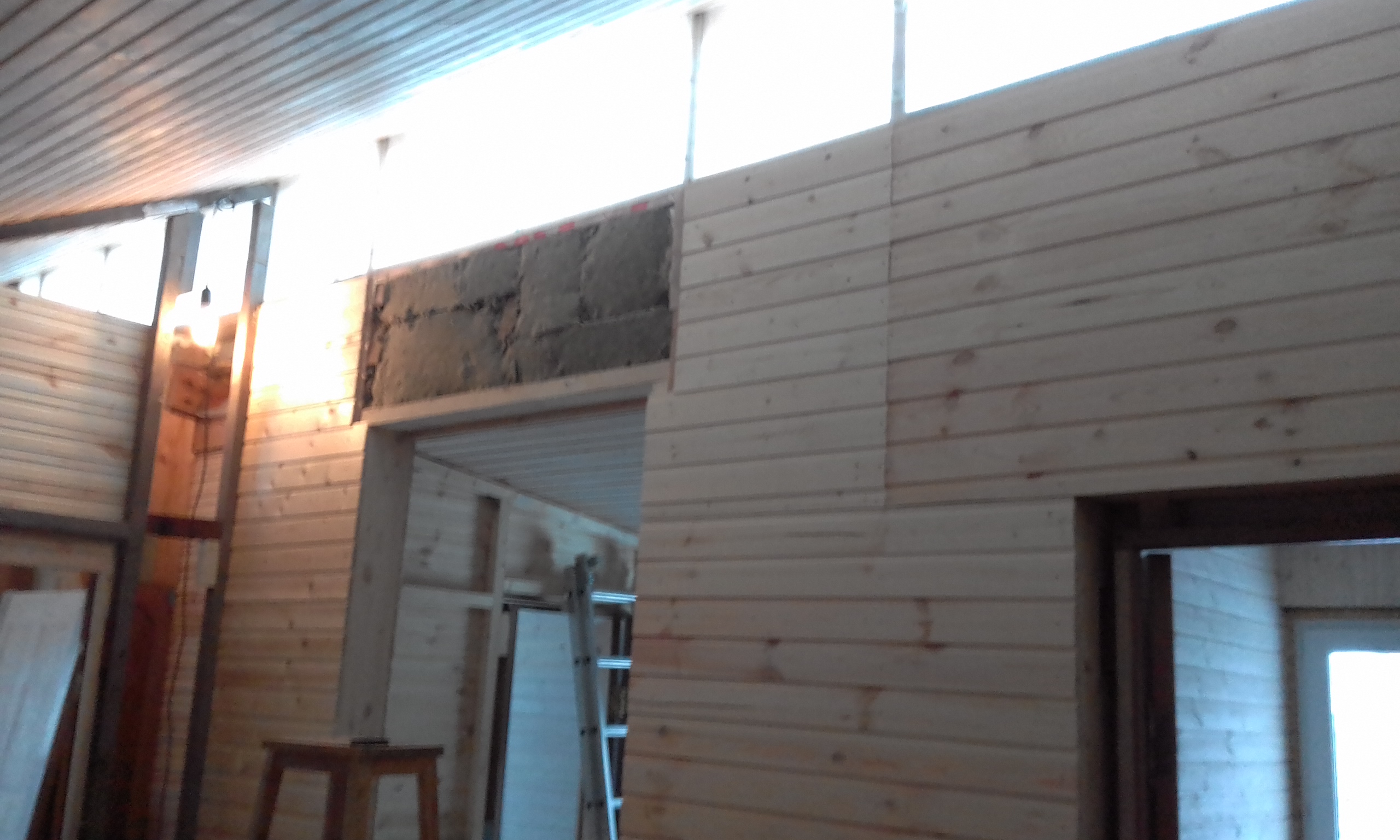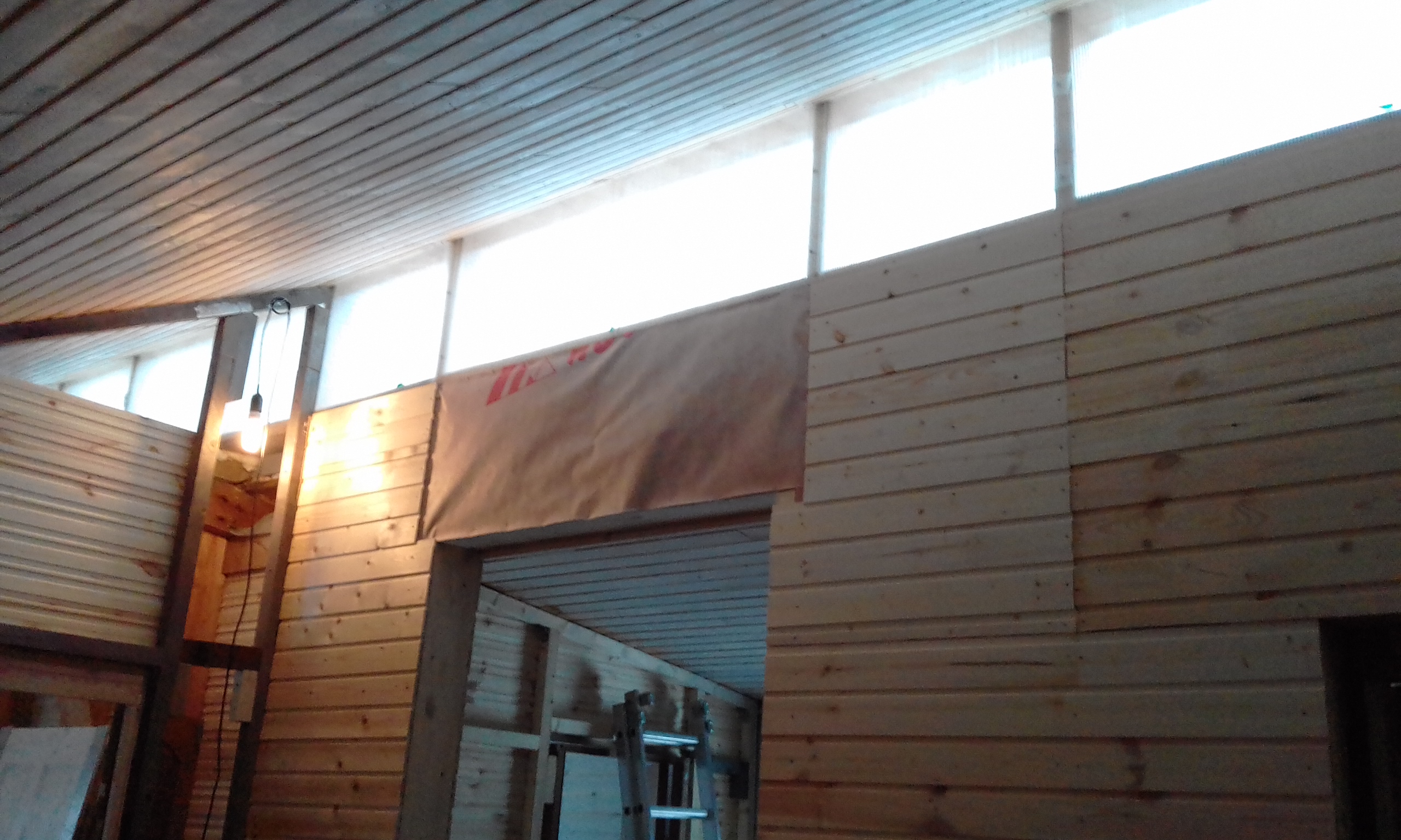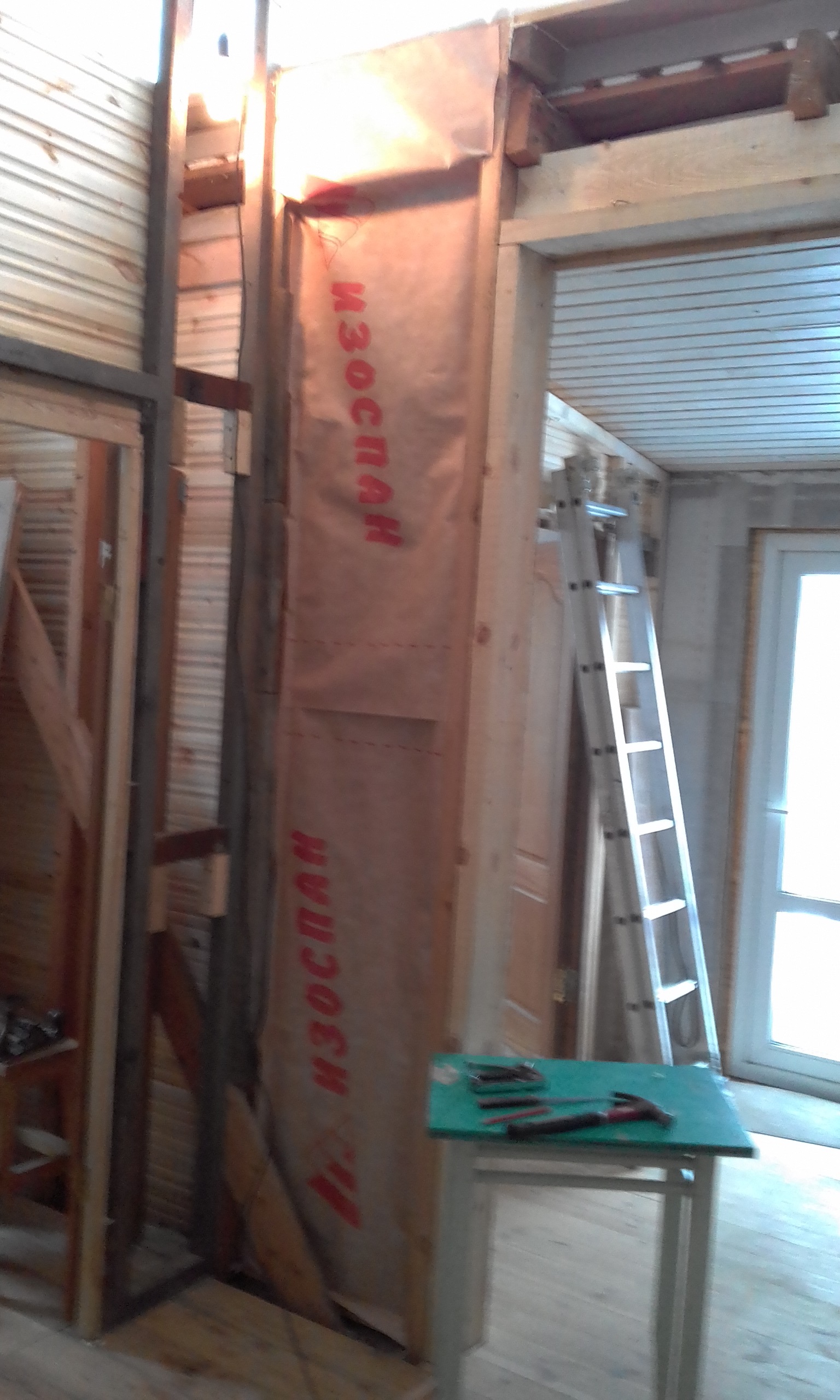 Продолжаю обшивать центральную стену. Приступил к последнему не обшитому углу.