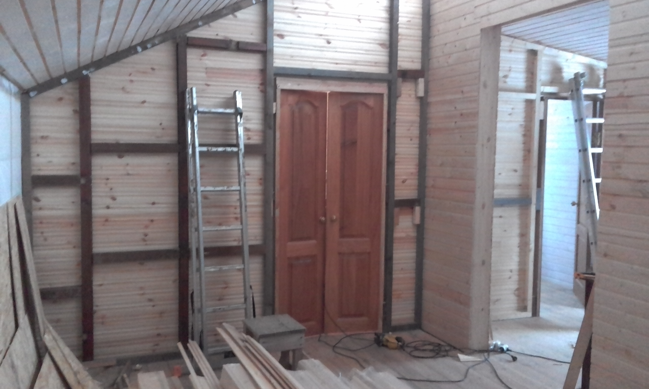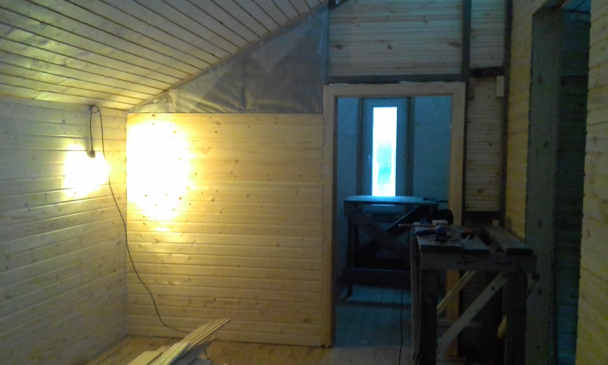 Закончил обшивку центральной стены и перегородки комнаты дочери.