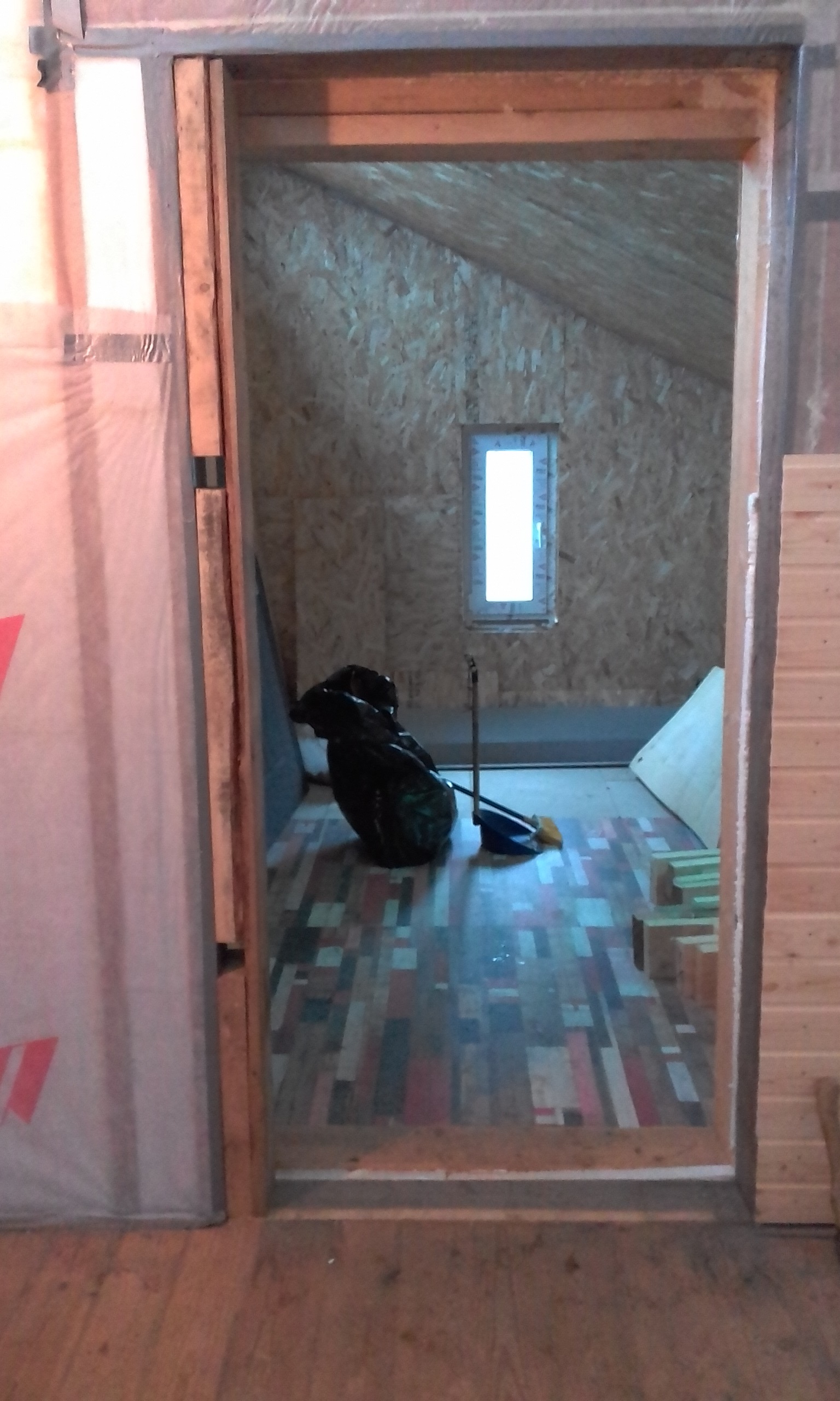 Установил добор из обрезков досок 50 мм и доски 25 мм, для уменьшения ширины проёма для дверного полотна шириной 800 мм.