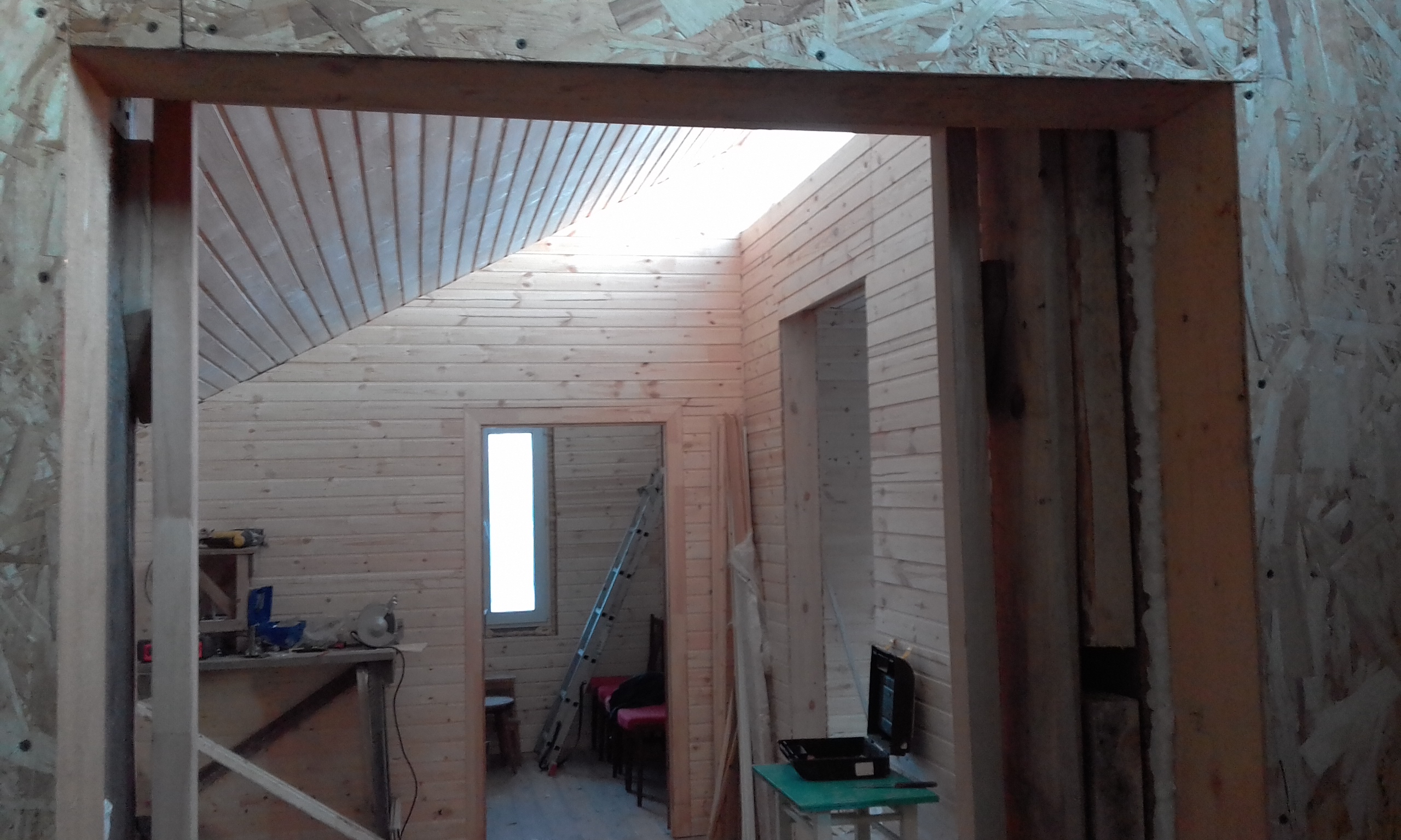 Вариантов несколько, никак не определюсь. Можно подоконник на уголках посадить, можно напрямую финишными гвоздиками пришить. Единственное, нельзя подрезать стойки, формирующие оконный проём. У меня окна вставлены прямо в промежуток между стойками каркаса, оконный проём не усилен (что поделаешь это концепция - "простой и недорогой дом" :smile1: ).