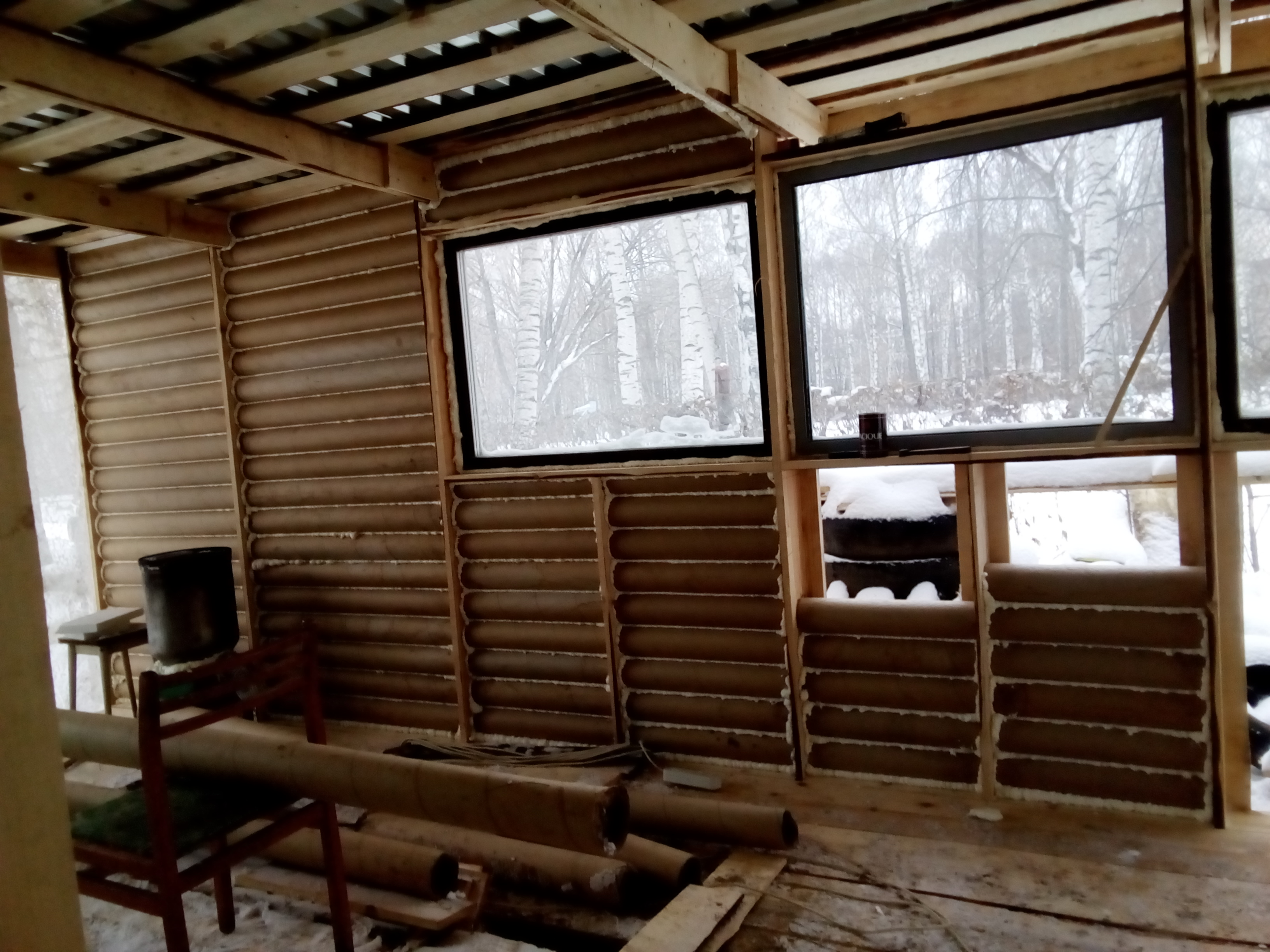 утепленный пенопластовой крошкой пристрой к дому.