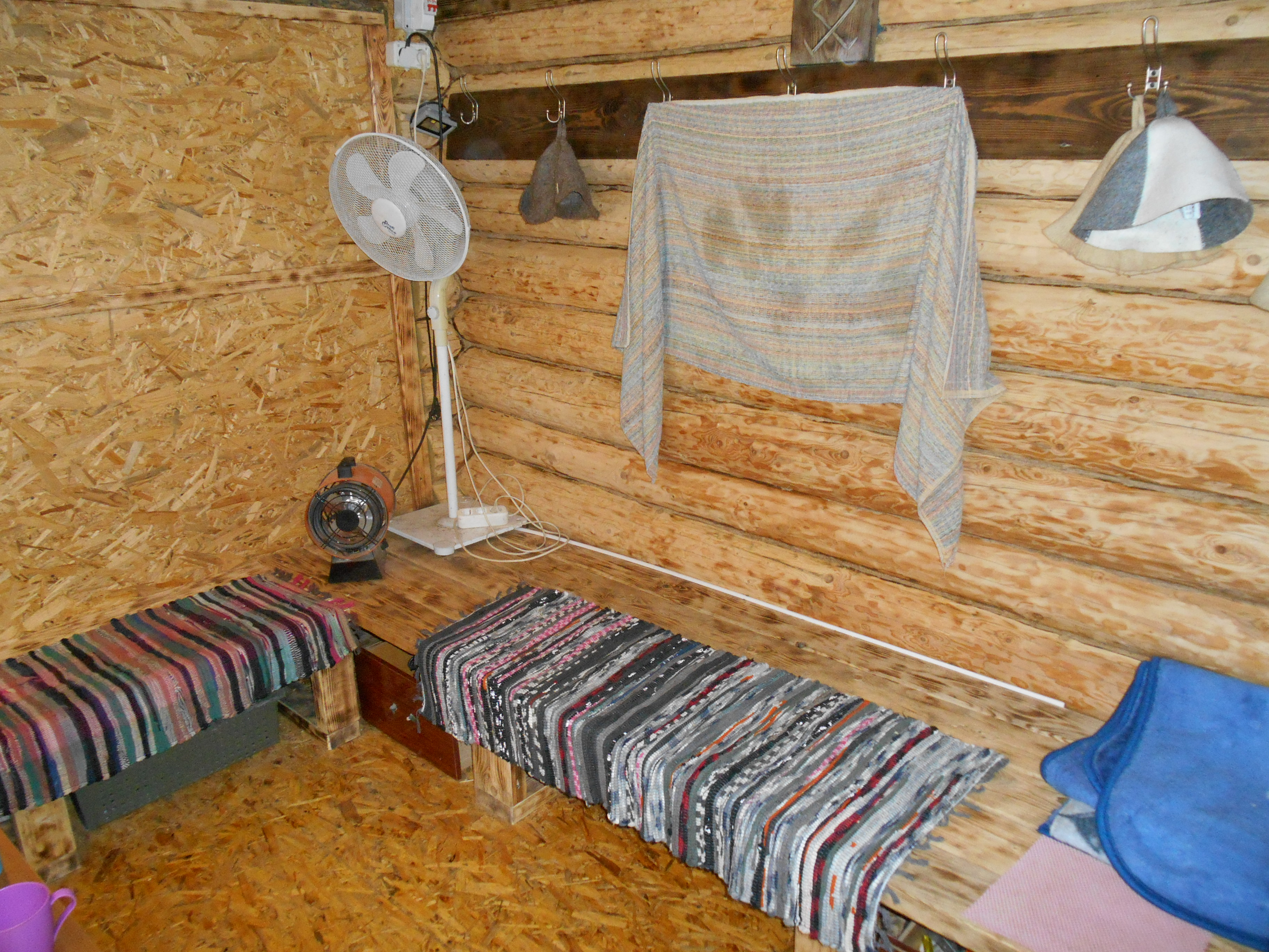 В доме пока ничем, в предбаннике, что по той же столбчатой схеме смесью опилка, суглинка и цемента