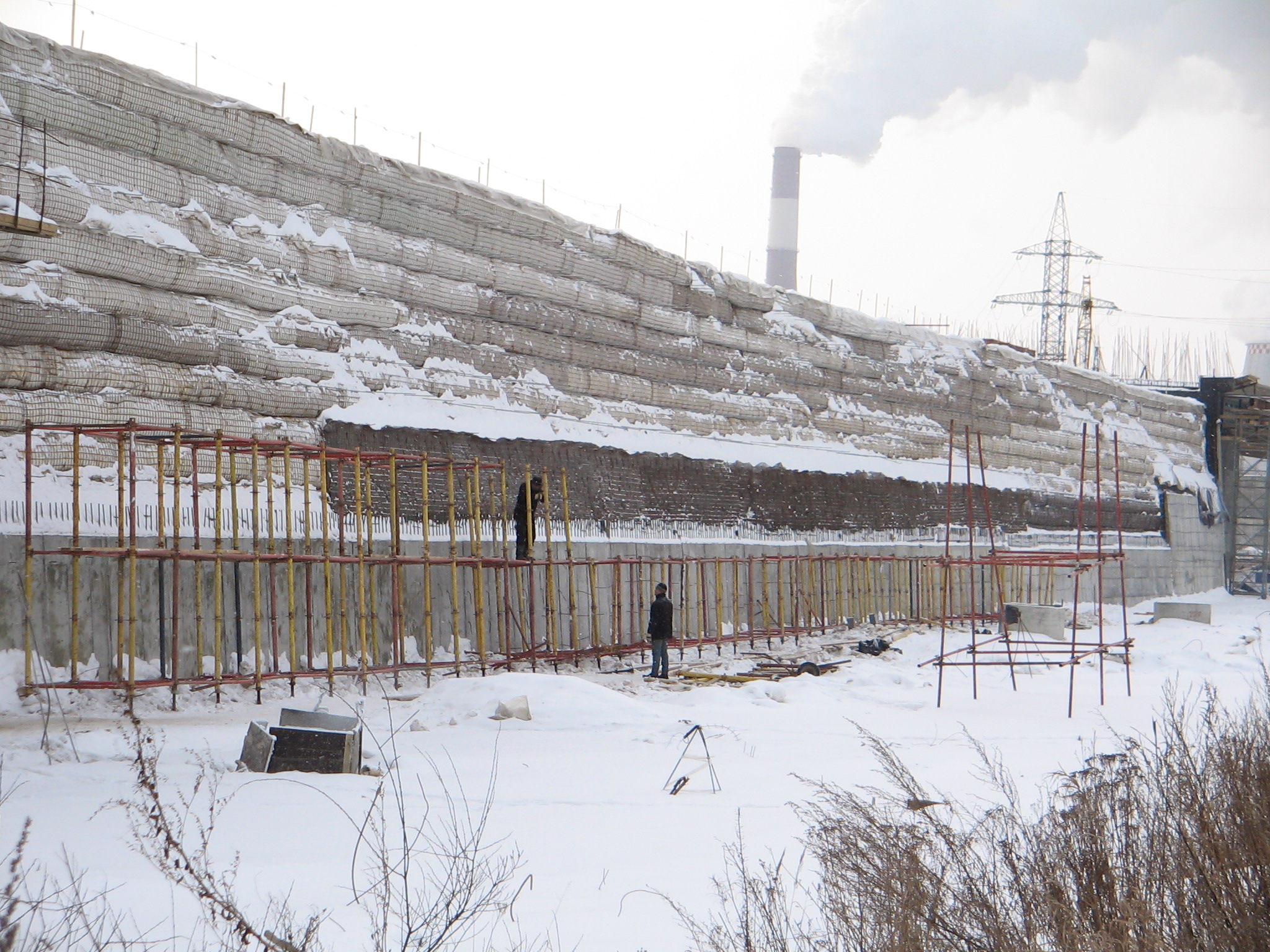 Тут было с чего заморочиться: прямо под насыпью железная дорога и откосу места не было, откос 89 град-вертикальная стенка, а если бы ты знал на чем та насыпь стоит, то вообще бы дар речи потерял. Грунто-цементные сваи по Джет-технологии.