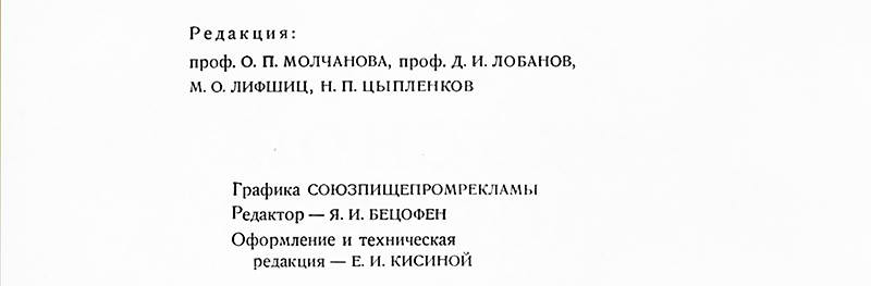 Издательство и редколлегия книги исходили из того, что в организации питания народа имеет значение не только количество продуктов, но и широкое распространение научно обоснованных знаний о том, как эти продукты правильно использовать, а также умение это сделать.