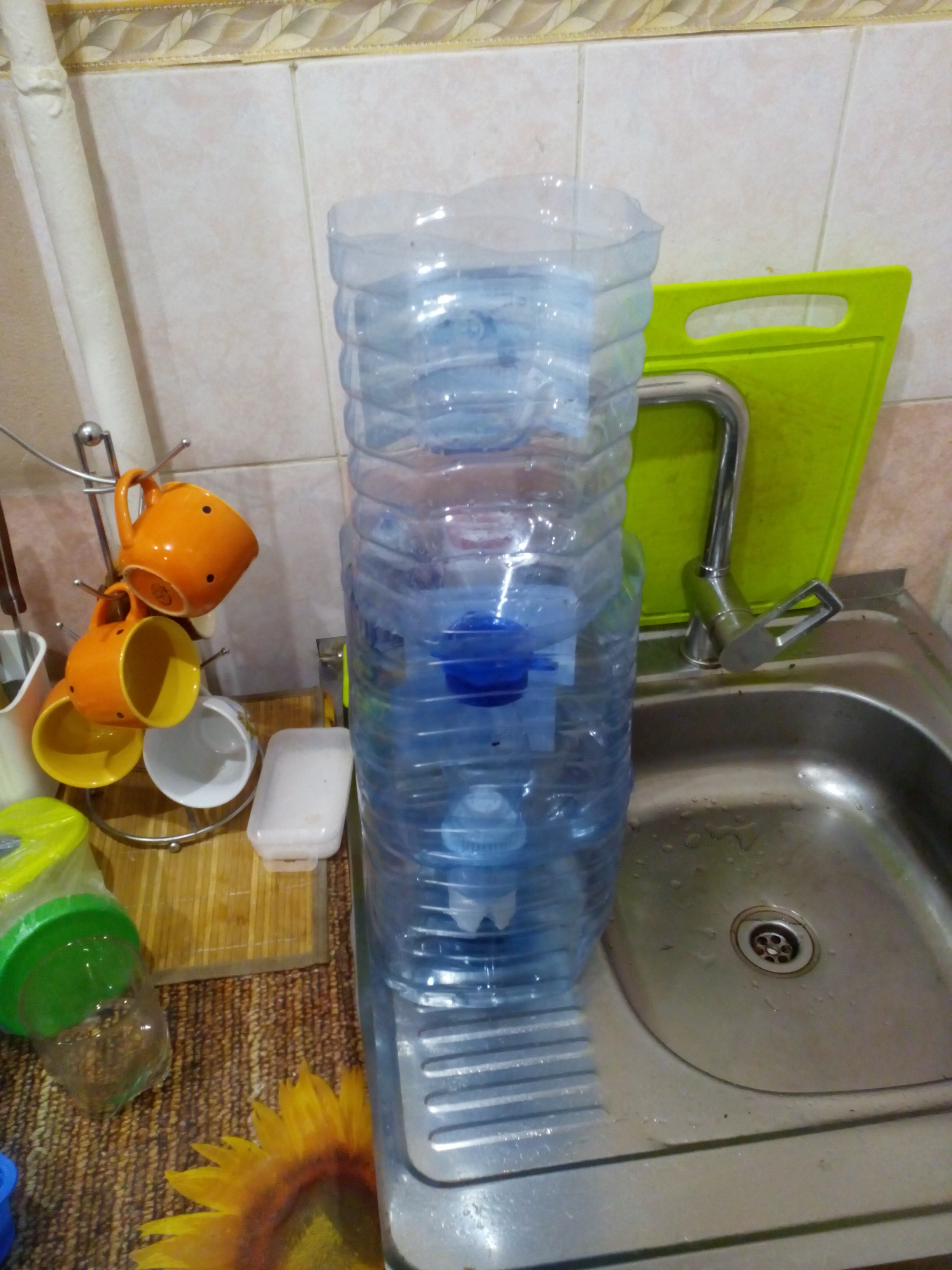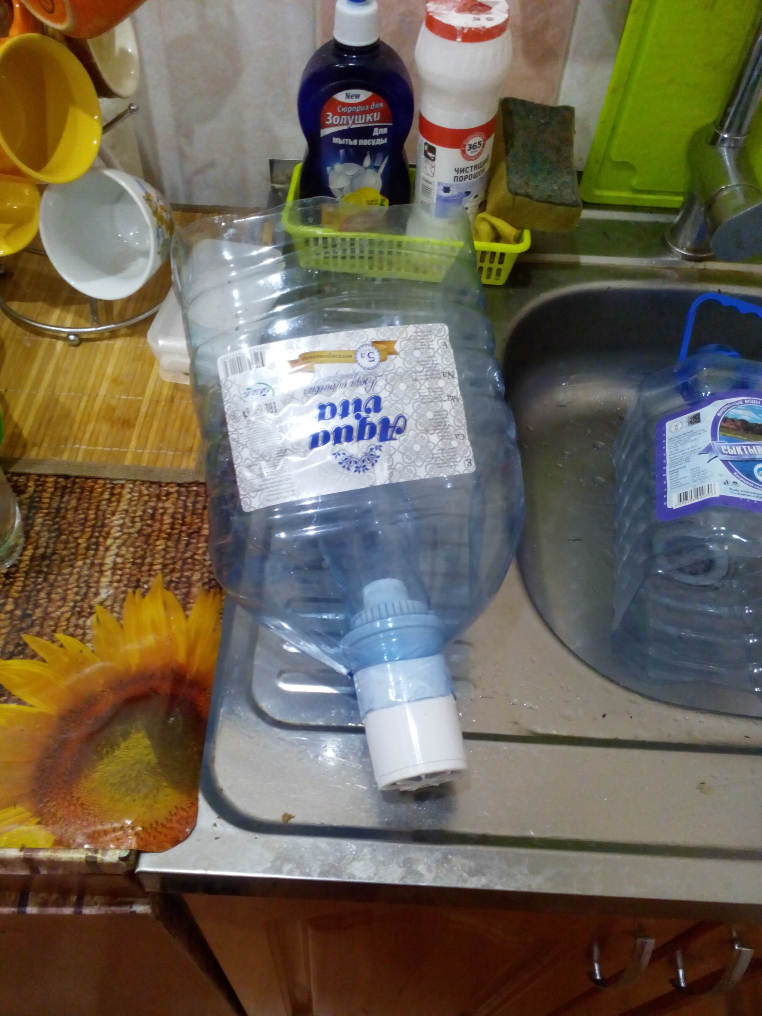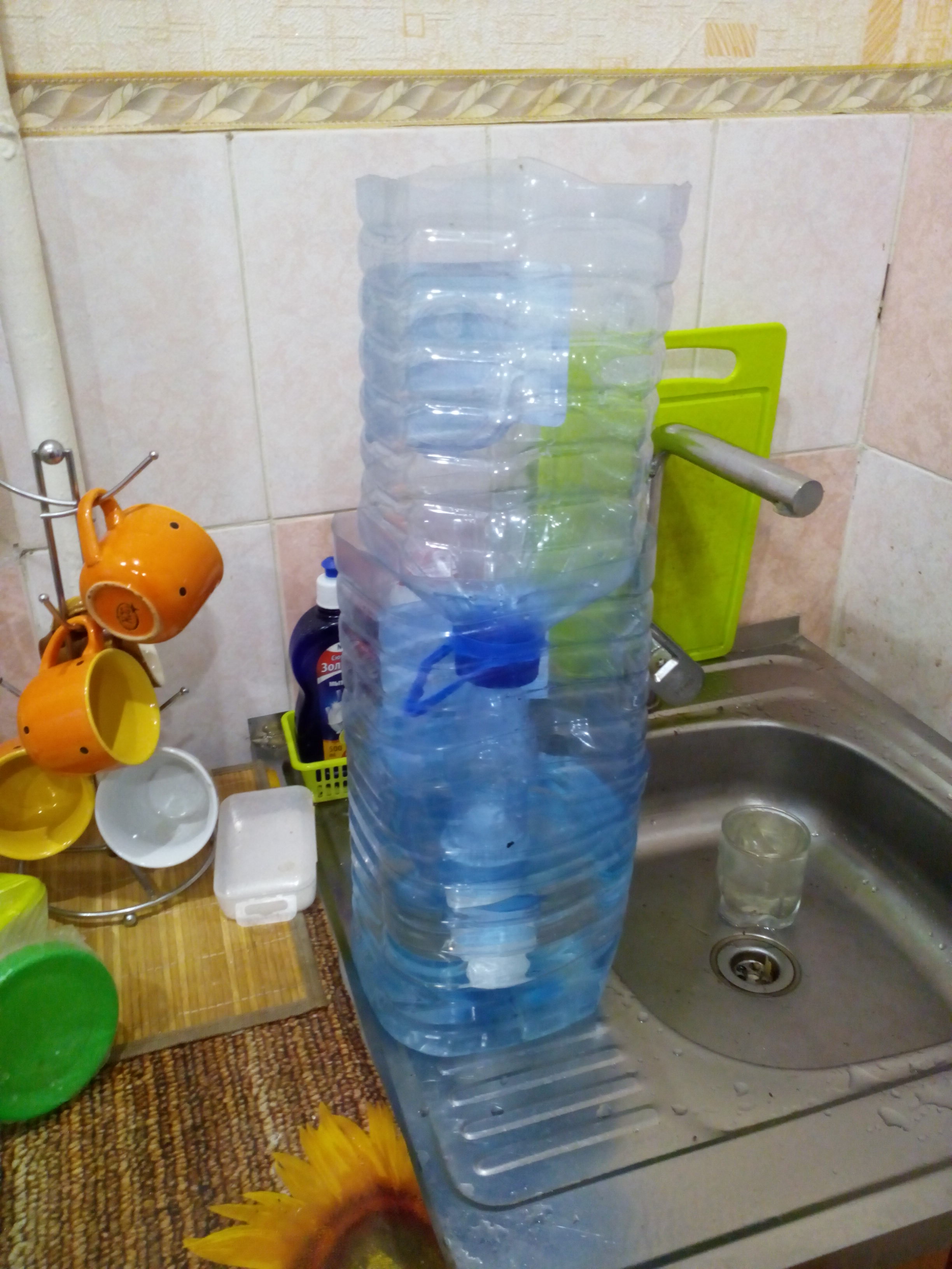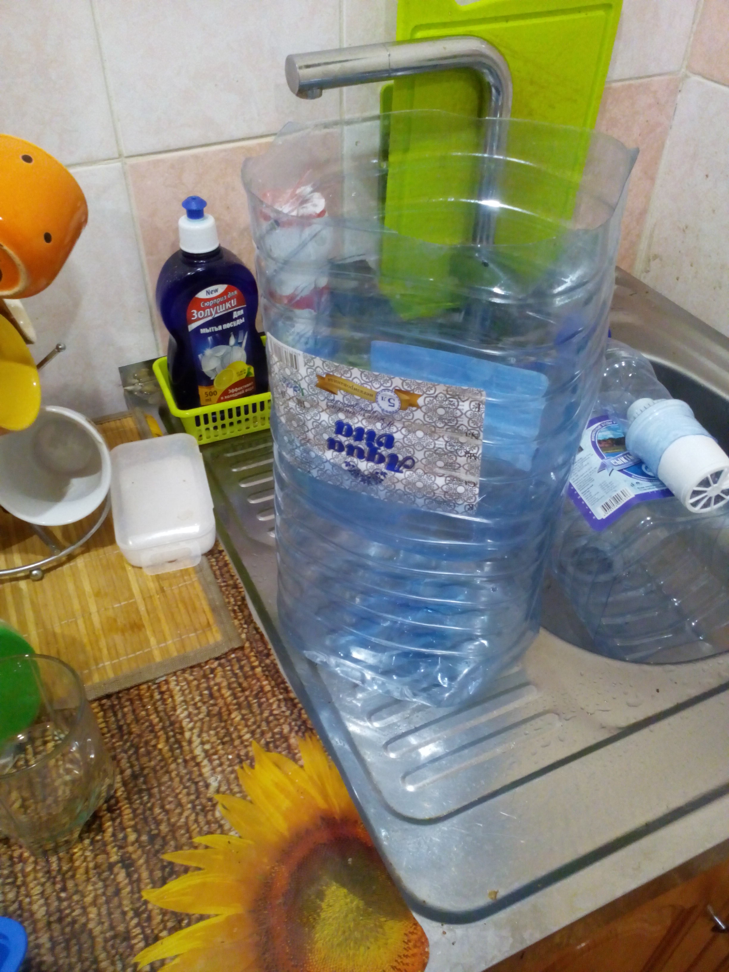 Вот встал передо мной подобный вопрос в декабре, когда был в командировке в Коми, а водица там такая, что без заварки можно смело обходиться и запах очень полезный при голодании-понюхал и жрать не тянет . Можно купить баллон 5 л за 50 руб, или залить его в фильтровальном автомате за 15 руб.,но с баллоном надо таскаться, что я в начале и делал, но когда скопилось 4 бутыли-надоело тратить деньги. И я придумал: