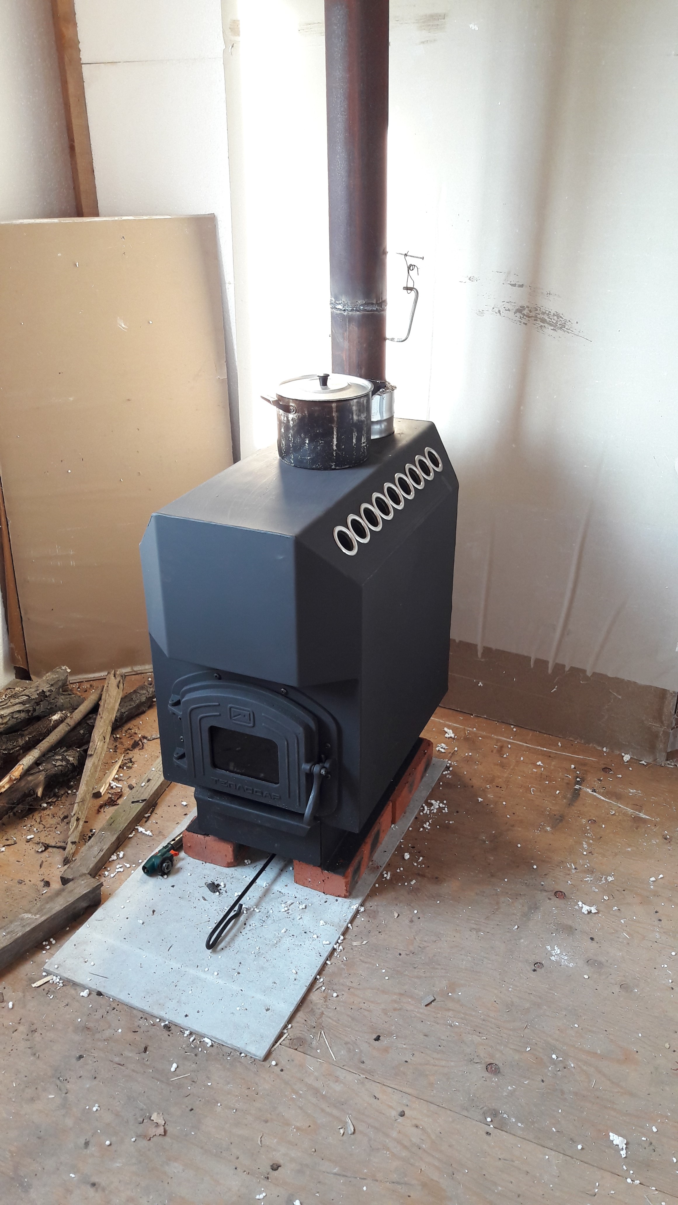 2. Попробовал печку в качестве варочной. Если честно - не очень. Подогреть да, но вот готовить... Основное тепло идет в нагрев воздуха, для чего собственно эта печка и предназначена.