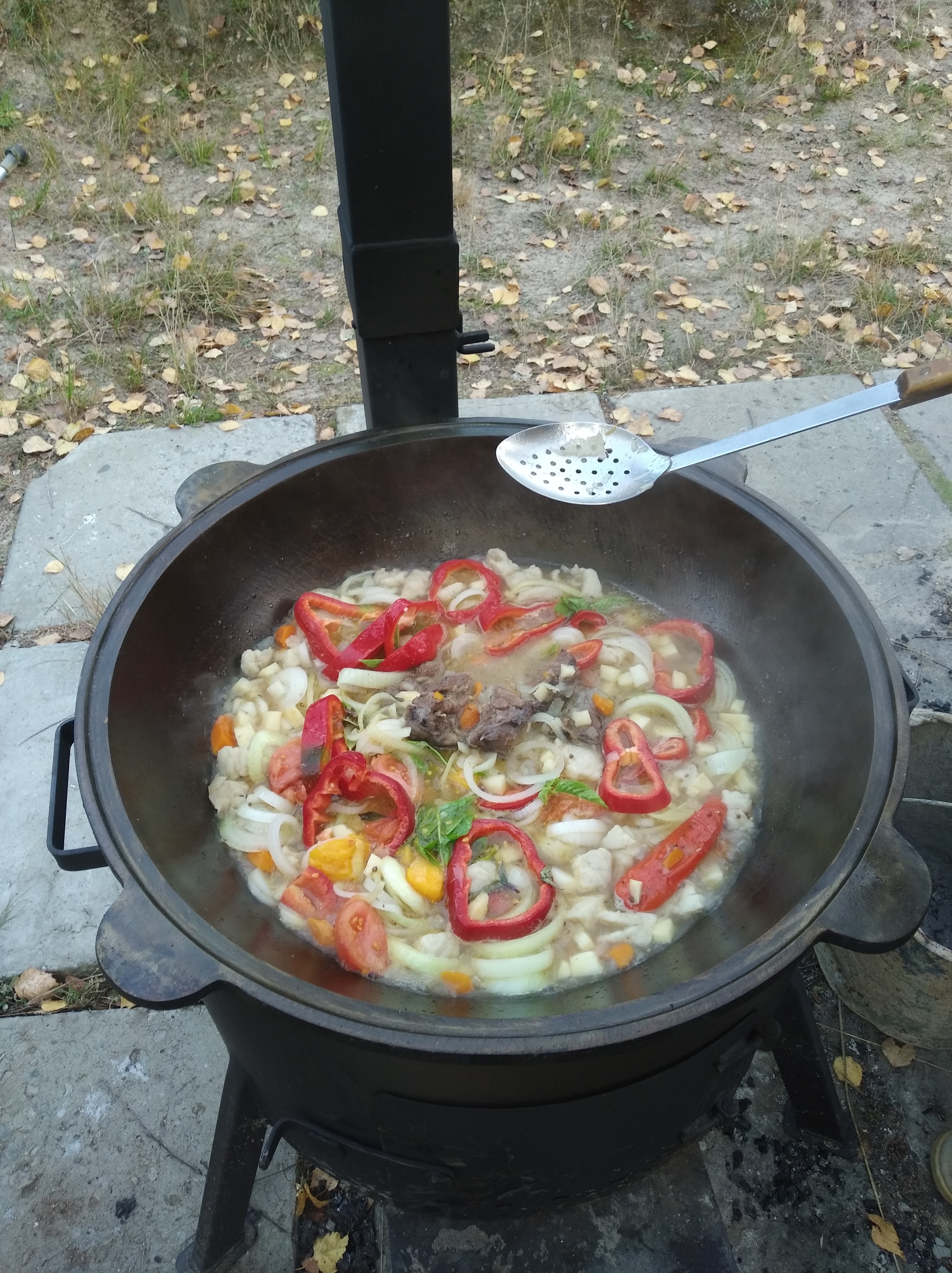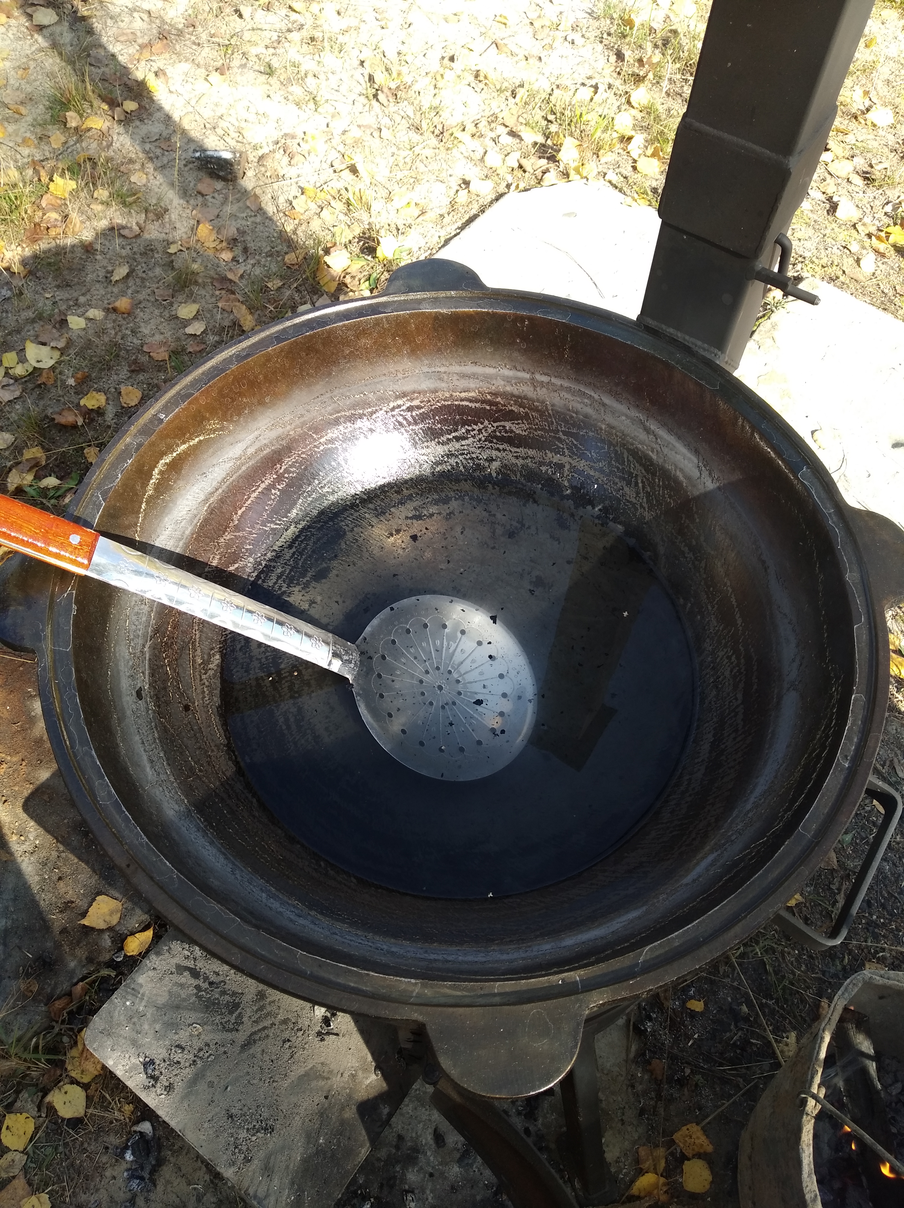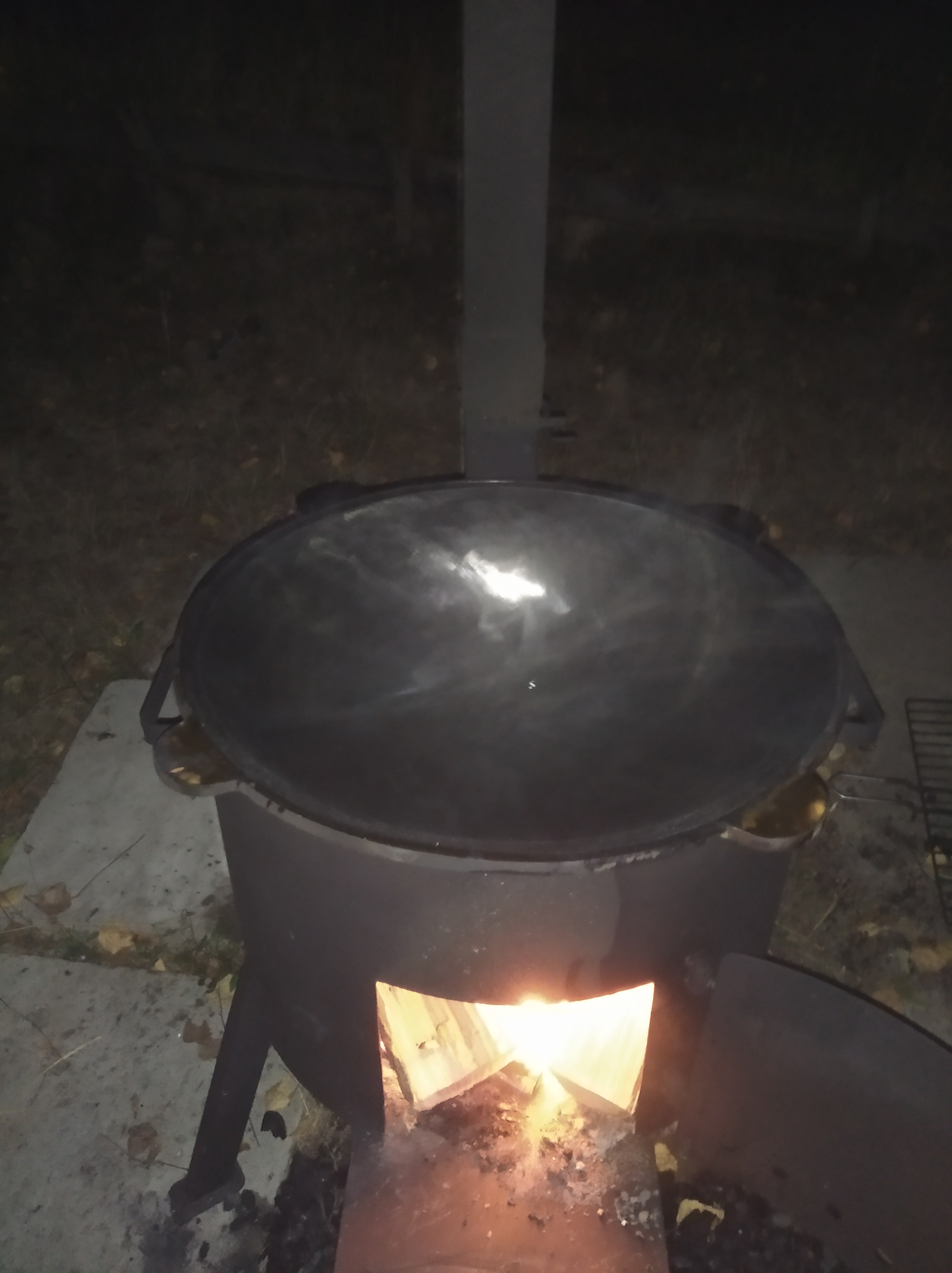 Сегодня с утра в ожидании гостей и первого боевого испытания казана решил сначала скипятить в нём воду, типа заодно и помыться