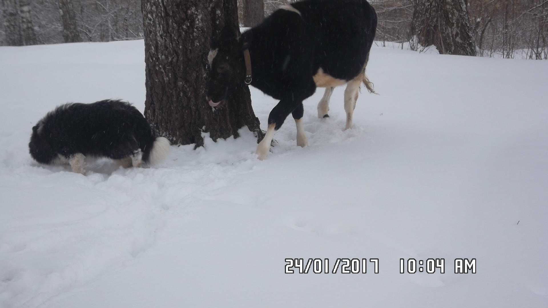 Никак, пока растет, гуляет...Уж больно он активный парень...вес уже под 280 кг. Бронепоезд, натуральный!