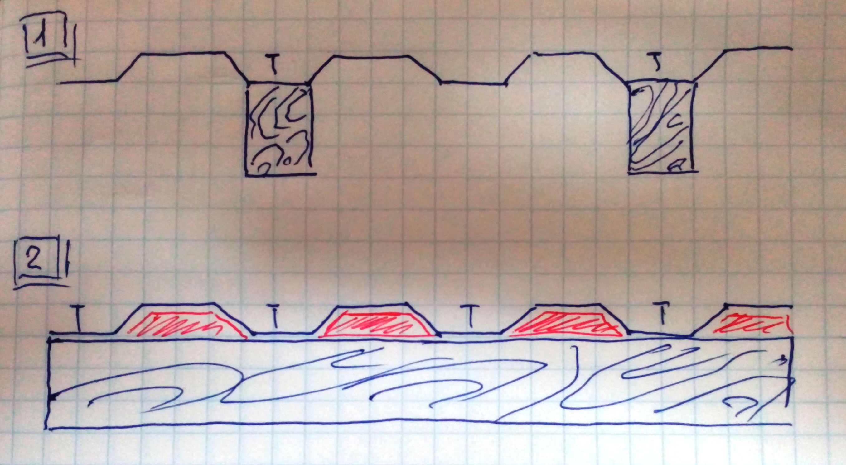 Если по рис.2 брусок горизонтален, а волна перпендикулярна бруску, то тяга все равно пойдет по волнам и подпалит крышу. Поэтому и располагают бруски горизонтально и волны параллельно брускам.А вертикальные перегородки еще тягу в момент возгорания уменьшат. Ну а уж если горит, то туши или беги-тут по обстоятельствам.
