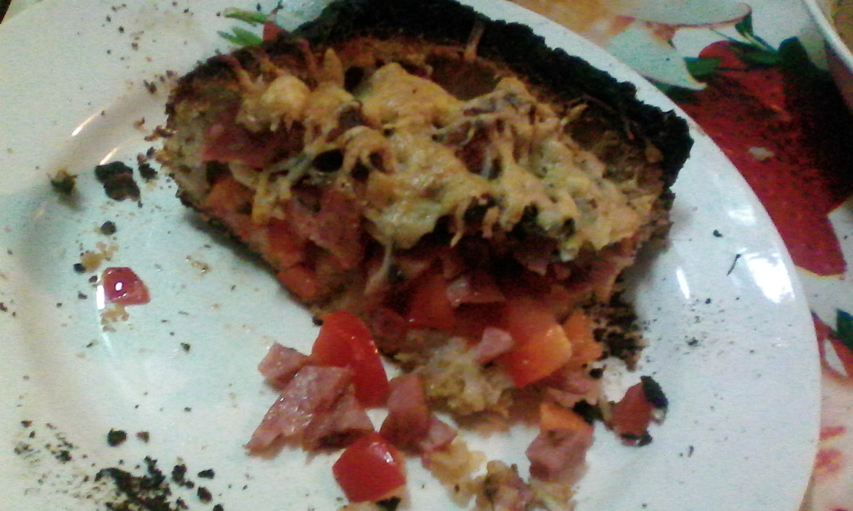 Сегодня делал в духовке и прокараулил, немного подгорели края, но на остальной части бутерброда не отразилось, внутри сочный. Это холостяцкий вариант пиццы, я добовлял в одну резаный соломкой имбирь, получилась ка с перчиком. Во вторую добавлял мороженный укроп пару хороших щепоток и чеснок мелко порезанный, пахло здорово пока готовилось, но при еде почти не чуствуется, надо было между слоями овощей наверно засыпать.