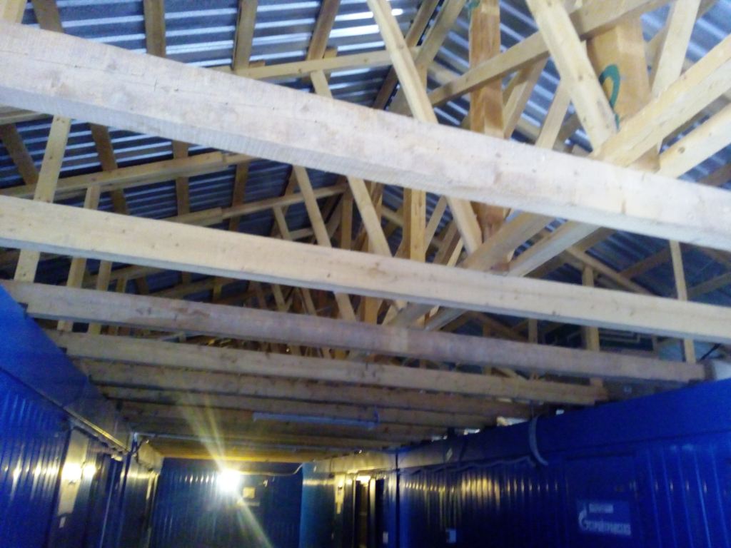 На следующий день я упорно потрудился - купил 12 листов профлиста, снял мет. профлист, содрал плоские металлические листы на фальцах и снова установил профлист. Потолочные балки и обрешётка в отличном состоянии. К сожалению смартфон забыл дома. Фото этого процесса нет.